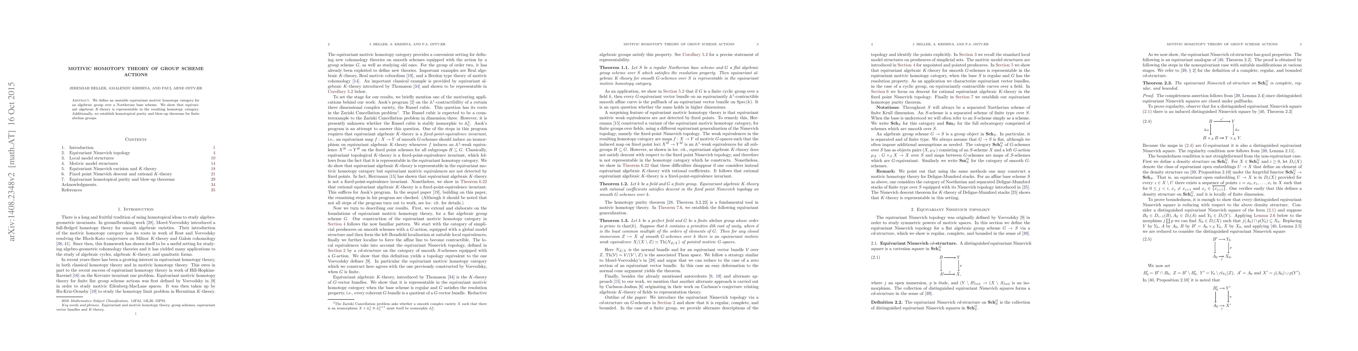This paper defines an unstable equivariant motivic homotopy category for algebraic groups and demonstrates that equivariant algebraic $K$-theory is representable within it. It also proves homotopical purity and blow-up theorems for finite abelian groups.