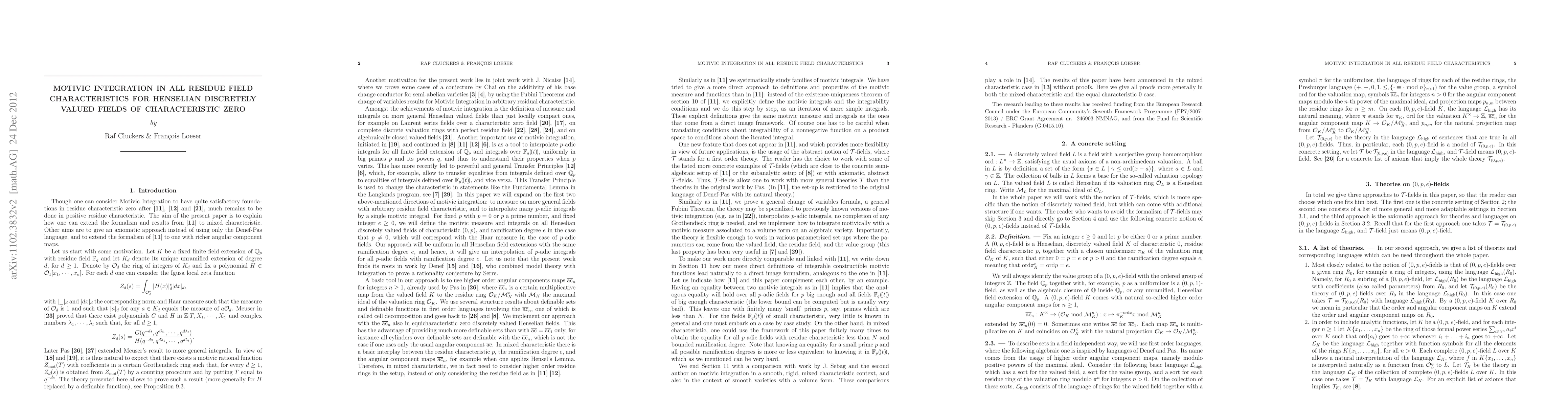 This paper extends motivic integration to mixed characteristic Henselian discretely valued fields with bounded ramification, providing a new axiomatic approach and richer angular component maps. It establishes a change of variables formula and a Fubini theorem in this context, applicable to classical p-adic integrals and previous versions of motivic integration.