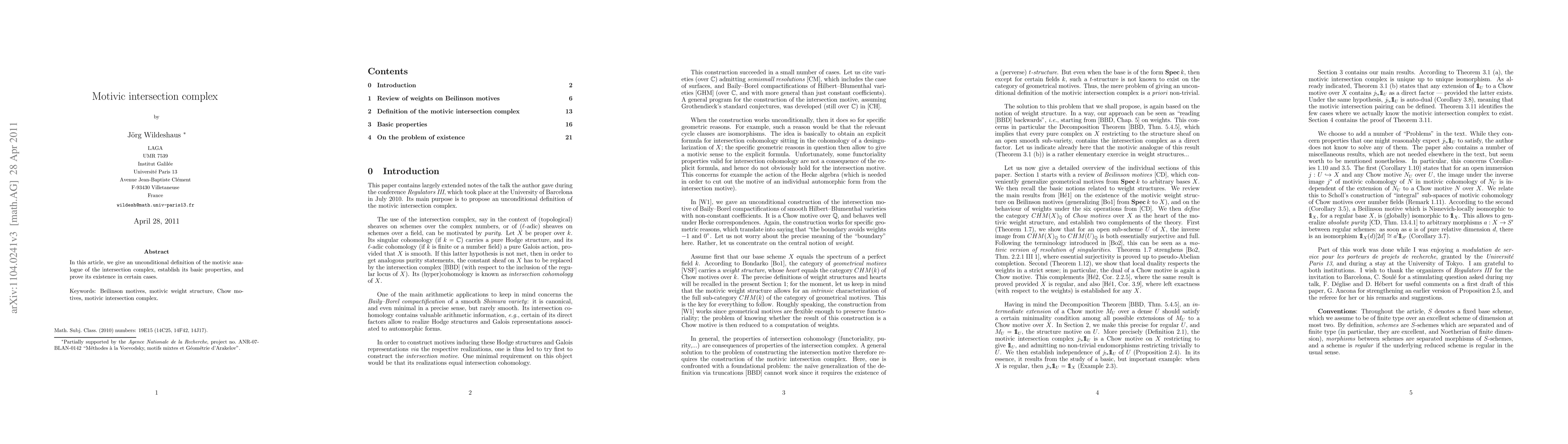 This paper defines the motivic analogue of the intersection complex unconditionally, explores its fundamental properties, and demonstrates its existence in specific scenarios.