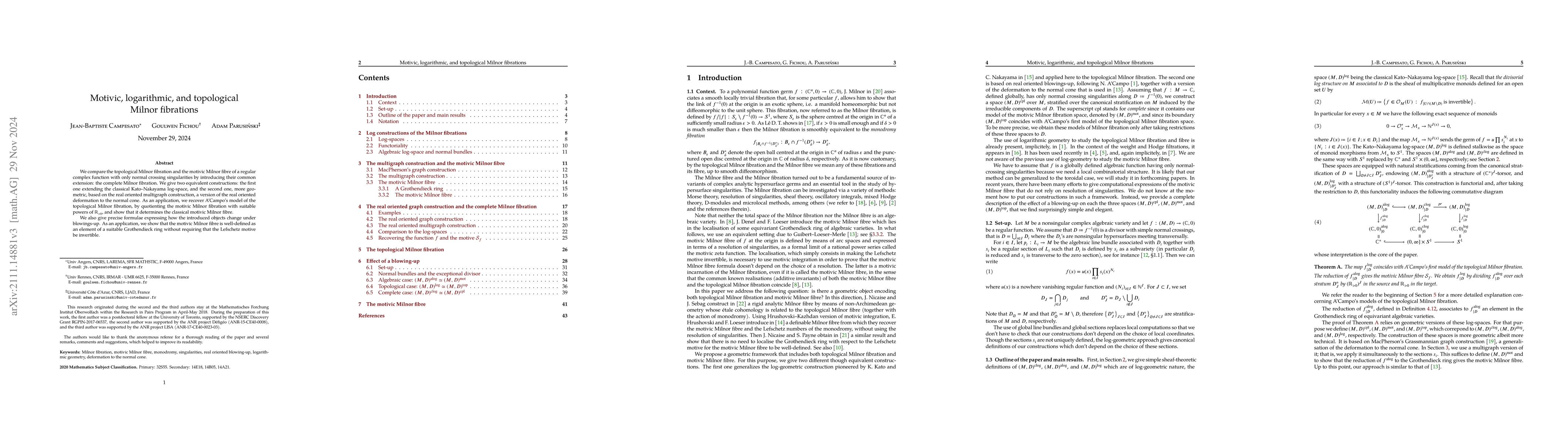 This paper compares the topological Milnor fibration and the motivic Milnor fibre, introducing a complete Milnor fibration based on log-space and real oriented multigraph constructions. It demonstrates that these constructions yield A'Campo's model of the topological Milnor fibration and provides precise formulae for changes under blowings-up, showing the motivic Milnor fibre's well-definedness in a Grothendieck ring.