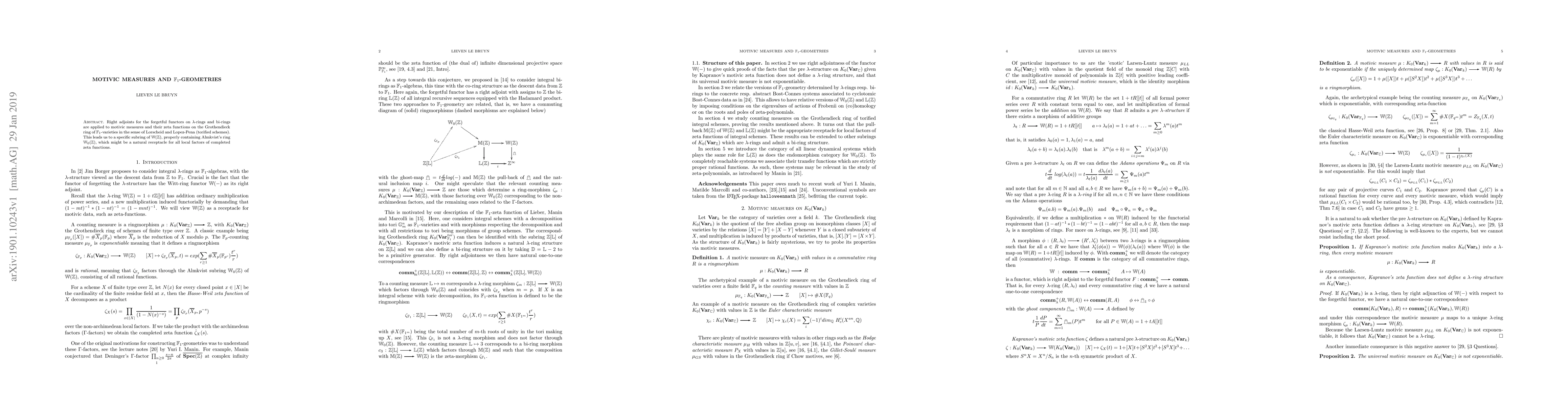Right adjoints for the forgetful functors on $\lambda$-rings and bi-rings are applied to motivic measures and their zeta functions on the Grothendieck ring of $\mathbb{F}_1$-varieties in the sense of Lorscheid and Lopez-Pena (torified schemes). This leads us to a specific subring of $\mathbb{W}(\mathbb{Z})$, properly containing Almkvist's ring $\mathbb{W}_0(\mathbb{Z})$, which might be a natural receptacle for all local factors of completed zeta functions.