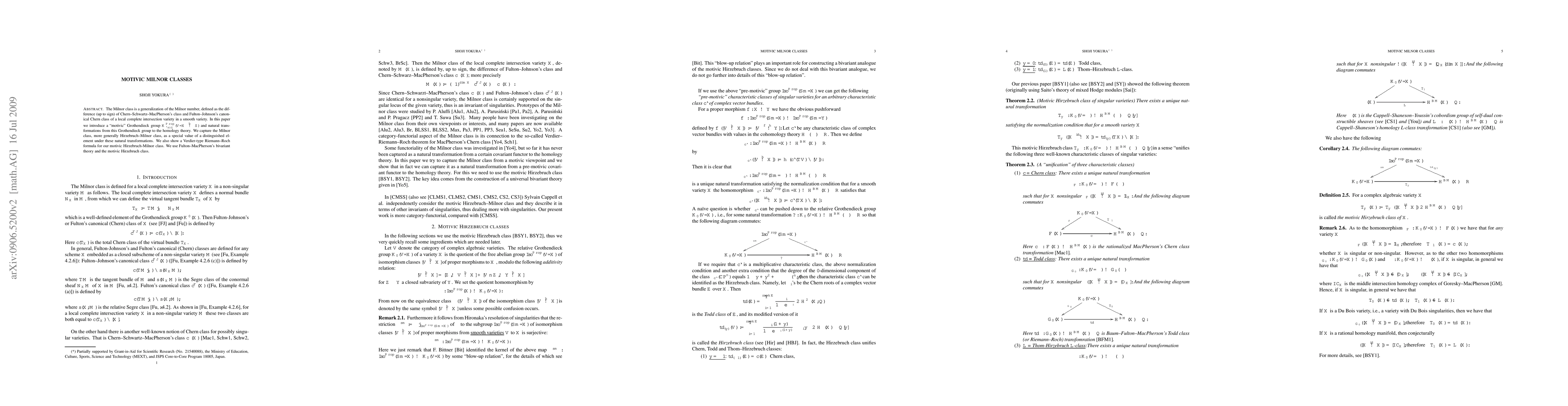 This paper generalizes Milnor classes through a new "motivic" Grothendieck group and shows how it relates to homology theories, capturing the Milnor and Hirzebruch-Milnor classes as special values. It also presents a Verdier-type Riemann-Roch formula for the proposed motivic Hirzebruch-Milnor class.