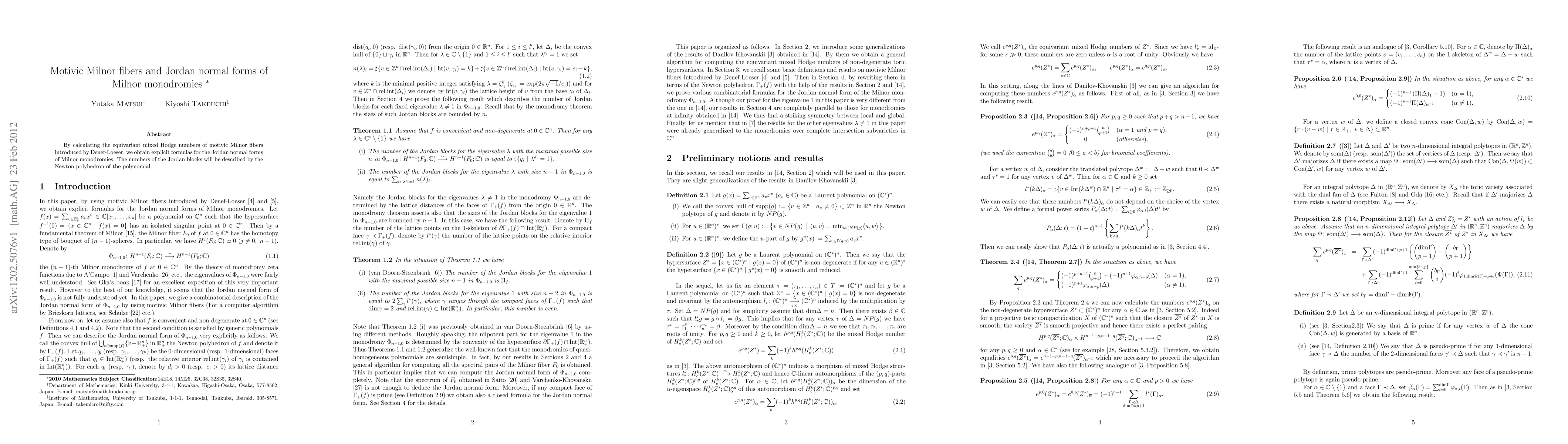 Summary: This paper derives explicit formulas for the Jordan normal forms of Milnor monodromies by calculating the equivariant mixed Hodge numbers of motivic Milnor fibers, with the sizes of Jordan blocks determined by the Newton polyhedron of the defining polynomial.