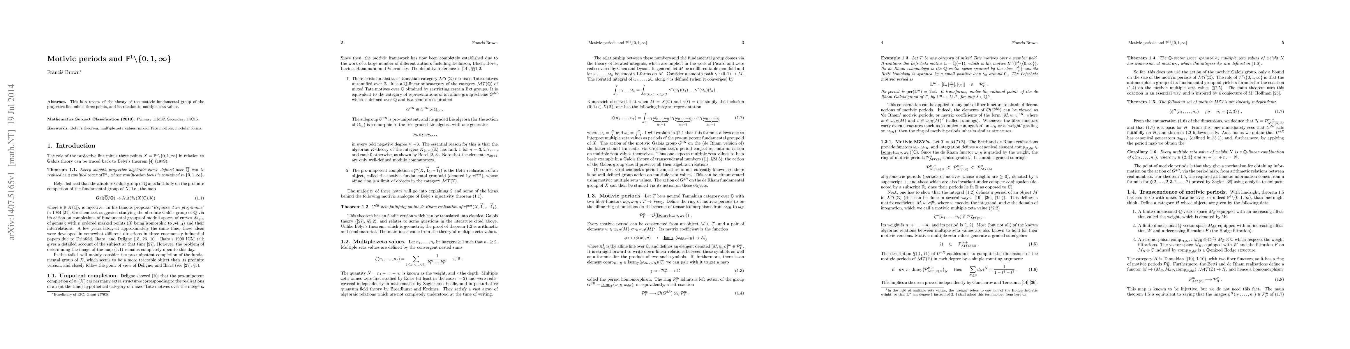 Summary: This paper reviews the theory of the motivic fundamental group of the projective line with three points removed, exploring its connections to multiple zeta values and their arithmetic significance.