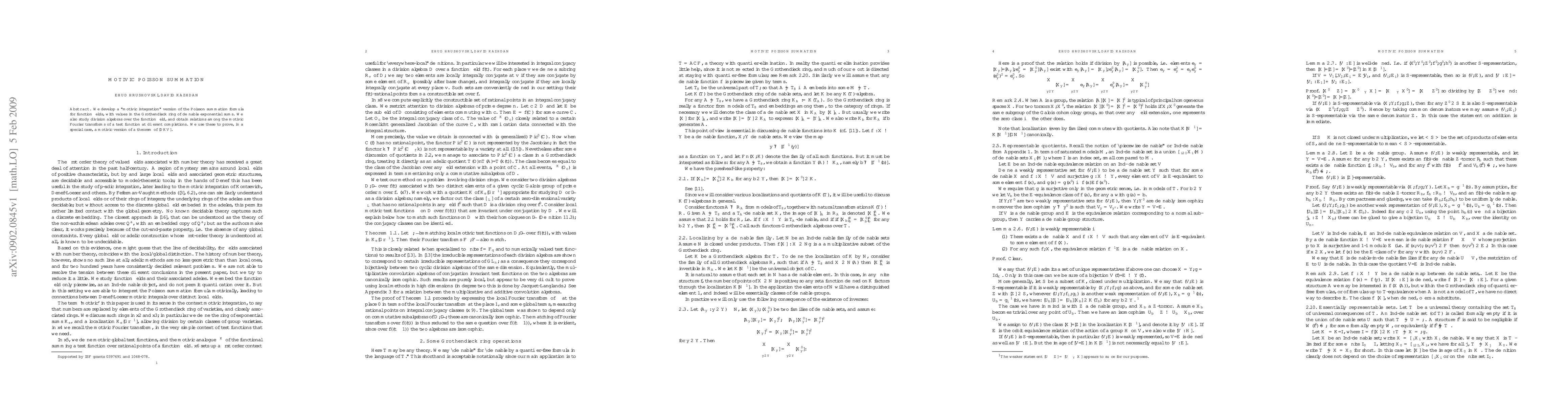 This paper develops a motivic integration version of the Poisson summation formula for function fields, focusing on the Grothendieck ring of definable exponential sums, and explores relations among motivic Fourier transforms of test functions. It also proves a special case of a motivic version of the Deligne-Kazhdan-Vigneras theorem.