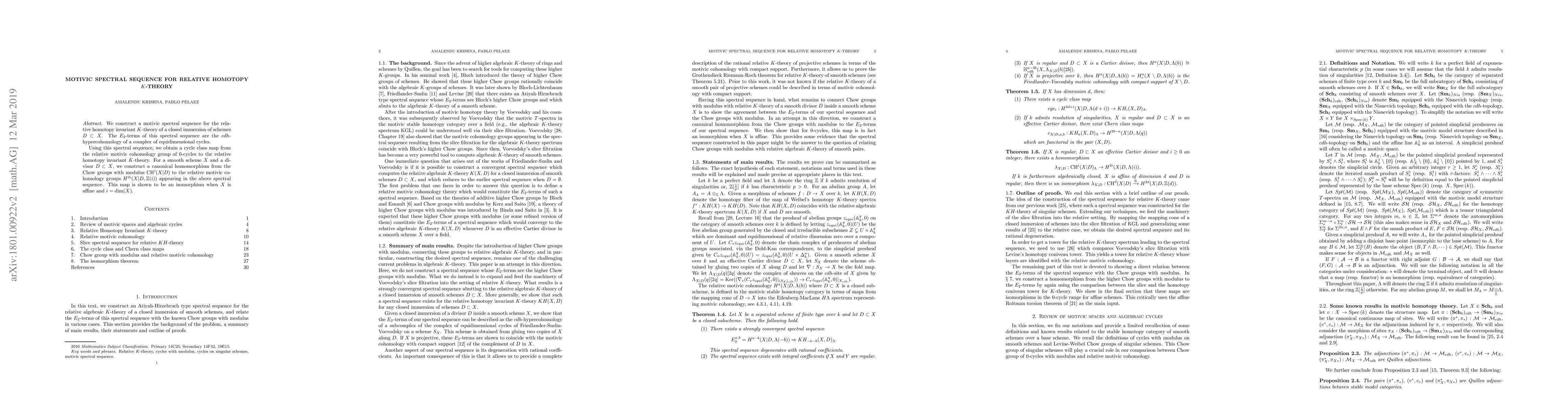 This paper constructs a motivic spectral sequence for relative homotopy K-theory in closed immersions of schemes, showing its $E_2$-terms relate to cdh-hypercohomology of cycles. It establishes a cycle class map and proves an isomorphism for a smooth scheme with a divisor under specific conditions.