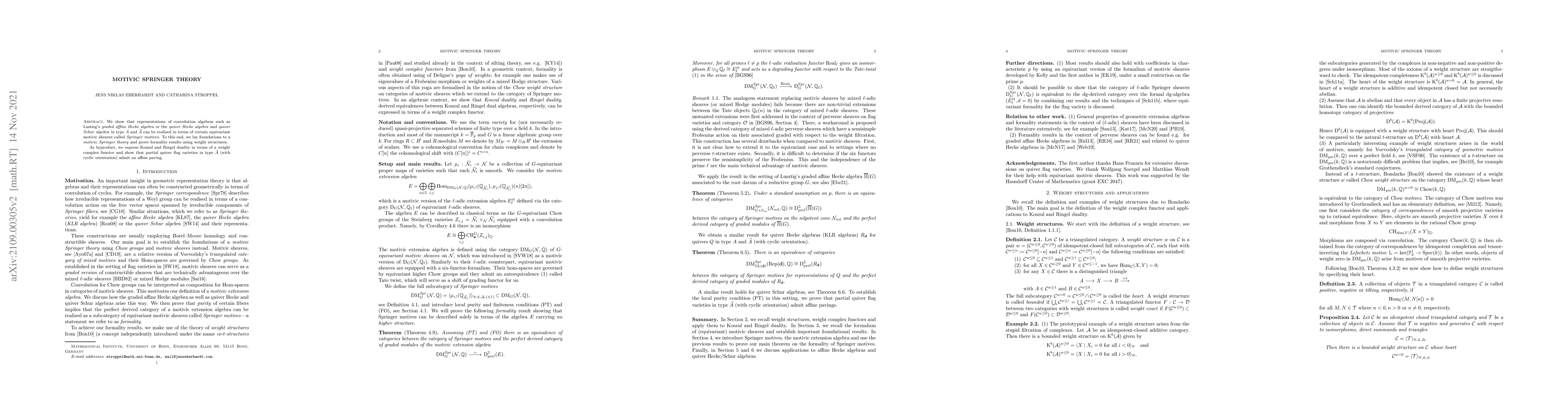 This paper establishes a connection between representations of convolution algebras and equivariant motivic sheaves termed Springer motives, laying the groundwork for motivic Springer theory. It also demonstrates Koszul and Ringel duality via a weight complex functor and proves that partial quiver flag varieties in affine type A have an affine paving.