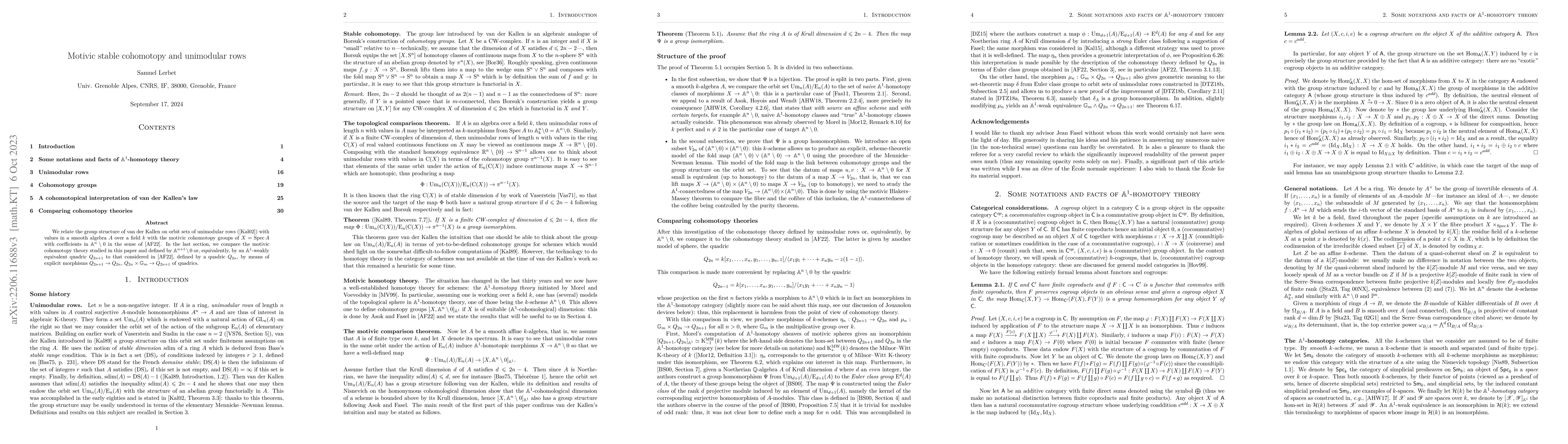 This paper connects the group structure of van der Kallen on orbit sets of unimodular rows in a smooth algebra $A$ to motivic cohomotopy groups of its spectrum. It also compares two definitions of motivic cohomotopy using quadrics $Q_{2n}$ and $Q_{2n+1}$ through explicit morphisms between them.