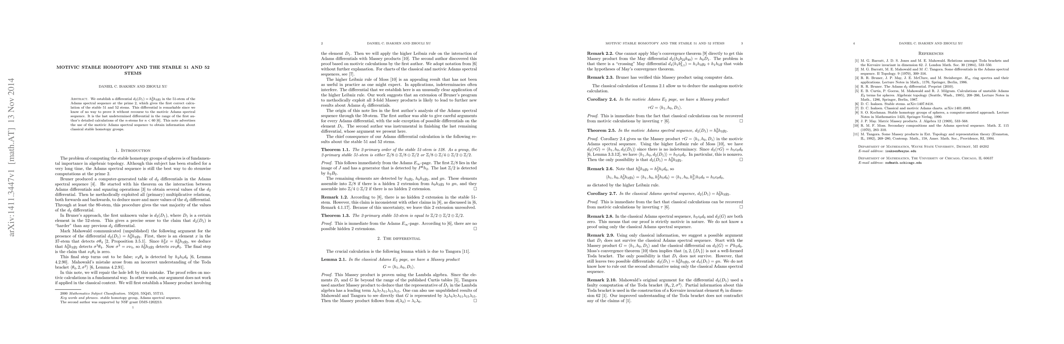 We establish a differential $d_2(D_1)=h_0^2h_3g_2$ in the $51$-stem of the Adams spectral sequence at the prime $2$, which gives the first correct calculation of the stable 51 and 52 stems. This differential is remarkable since we know of no way to prove it without recourse to the motivic Adams spectral sequence. It is the last undetermined differential in the range of the first author's detailed calculations of the $n$-stems for $n<60$ [6]. This note advertises the use of the motivic Adams spectral sequence to obtain information about classical stable homotopy groups.