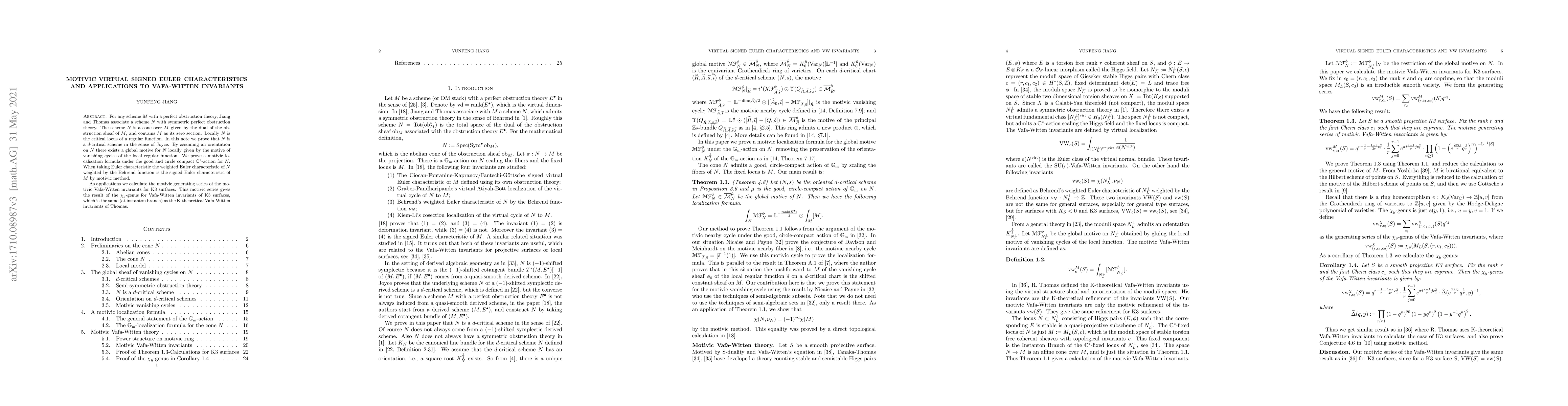 This paper associates a scheme $N$ with a perfect obstruction theory to a scheme $M$, proving $N$ is a $d$-critical scheme. It establishes a motivic localization formula and computes the motivic generating series for Vafa-Witten invariants of K3 surfaces, aligning with K-theoretical results.