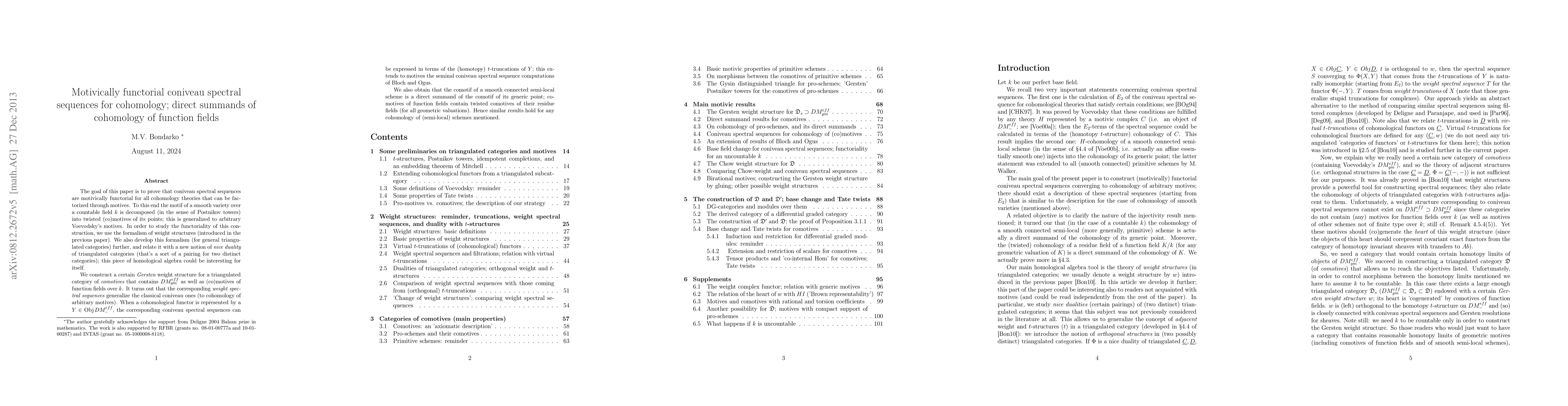 This paper constructs triangulated analogues of coniveau spectral sequences for Voevodsky's motives, introducing a Gersten weight structure for a category of comotives. It shows that these spectral sequences are functorial and computable, extending the coniveau spectral sequence computations to motives, and proves that the cohomology of a smooth semi-local scheme is a direct summand of its generic fibre's cohomology.