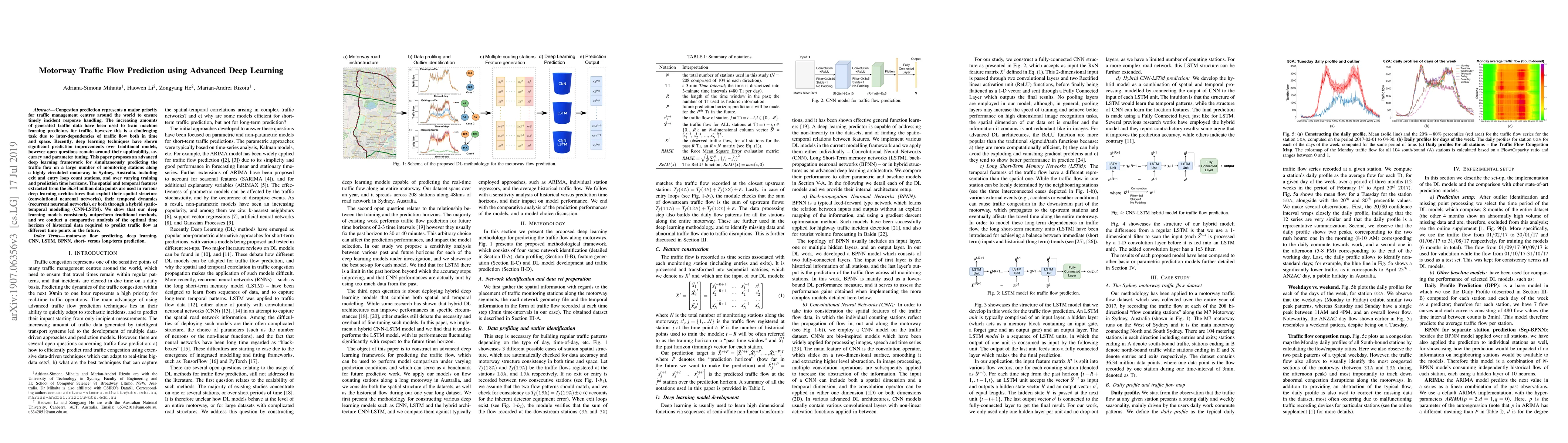 This paper proposes an advanced deep learning framework to predict motorway traffic flow using convolutional and recurrent neural networks, demonstrating superior performance over traditional methods. The study analyzes the optimal historical data length for predicting future traffic flow at various time horizons.