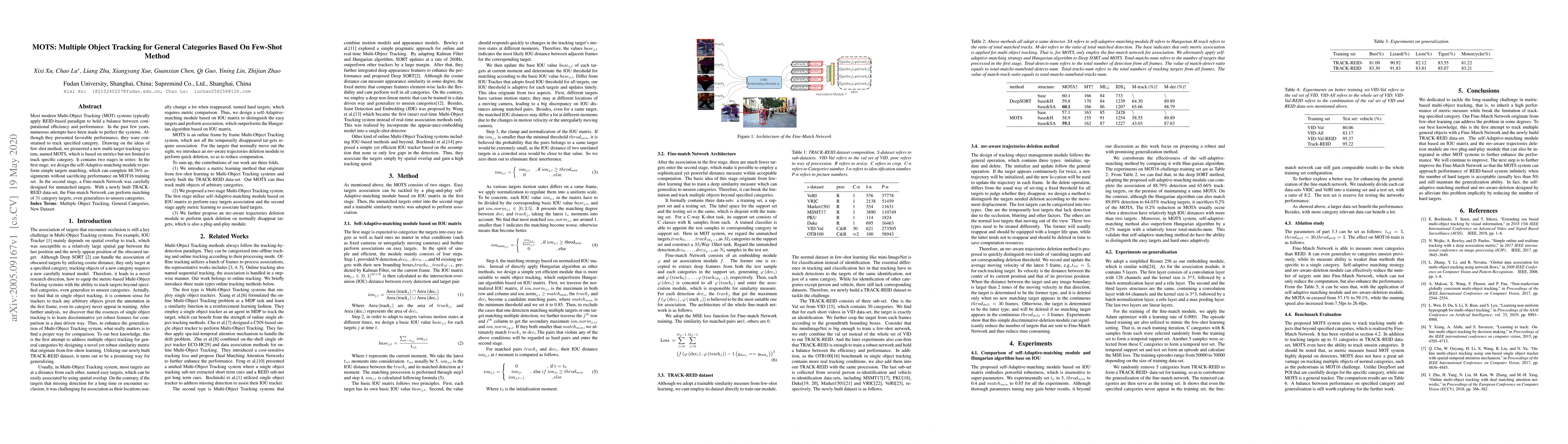Most modern Multi-Object Tracking (MOT) systems typically apply REID-based paradigm to hold a balance between computational efficiency and performance. In the past few years, numerous attempts have been made to perfect the systems. Although they presented favorable performance, they were constrained to track specified category. Drawing on the ideas of few shot method, we pioneered a new multi-target tracking system, named MOTS, which is based on metrics but not limited to track specific category. It contains two stages in series: In the first stage, we design the self-Adaptive-matching module to perform simple targets matching, which can complete 88.76% assignments without sacrificing performance on MOT16 training set. In the second stage, a Fine-match Network was carefully designed for unmatched targets. With a newly built TRACK-REID data-set, the Fine-match Network can perform matching of 31 category targets, even generalizes to unseen categories.