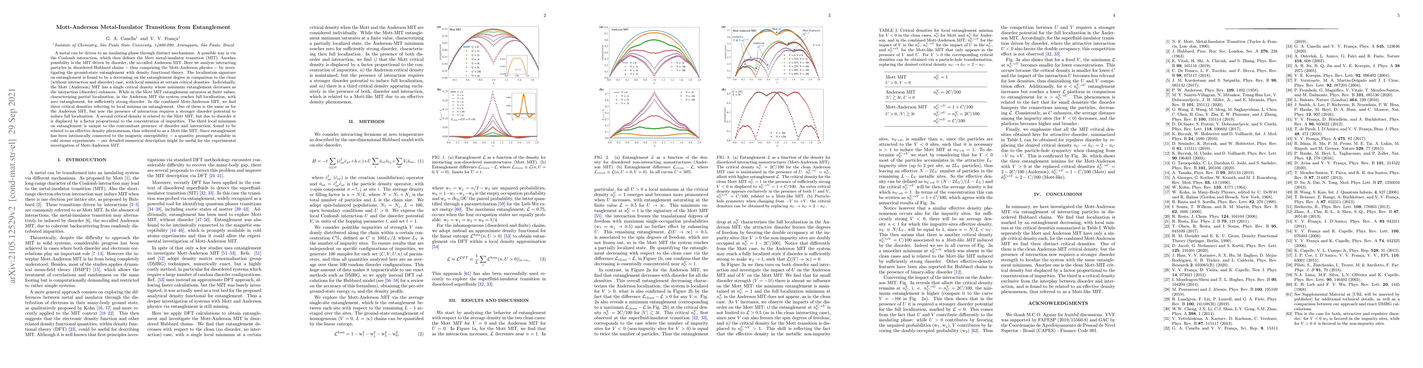 The paper investigates the combined effects of Coulomb interaction and disorder on metal-insulator transitions in Hubbard chains, revealing three critical densities for entanglement minima. While the Mott and Anderson transitions individually exhibit single critical densities, the combined Mott-Anderson transition shows a unique entanglement minimum tied to an effective density phenomenon.