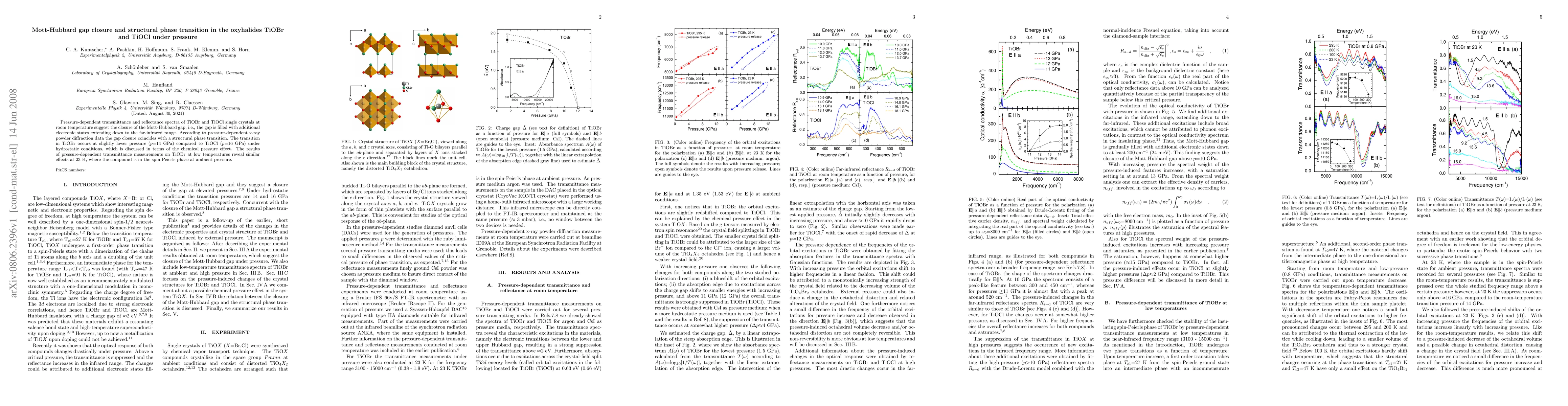 This study investigates the pressure-induced closure of the Mott-Hubbard gap in TiOBr and TiOCl, revealing that the gap is filled with electronic states under pressure. The closure coincides with a structural phase transition, occurring at 14 GPa for TiOBr and 16 GPa for TiOCl, attributed to chemical pressure effects.