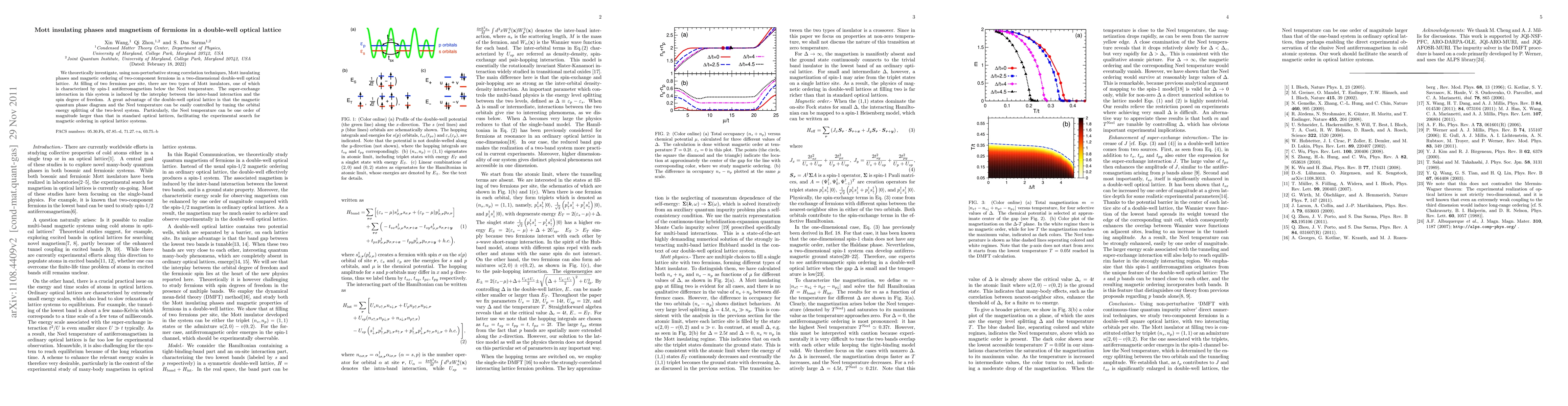 This paper explores the Mott insulating phases and magnetic ordering of fermions in a double-well optical lattice using strong correlation techniques. The study reveals two types of Mott insulators, one exhibiting spin-1 antiferromagnetism, with the Neel temperature significantly higher than in standard optical lattices, allowing for easier experimental observation.