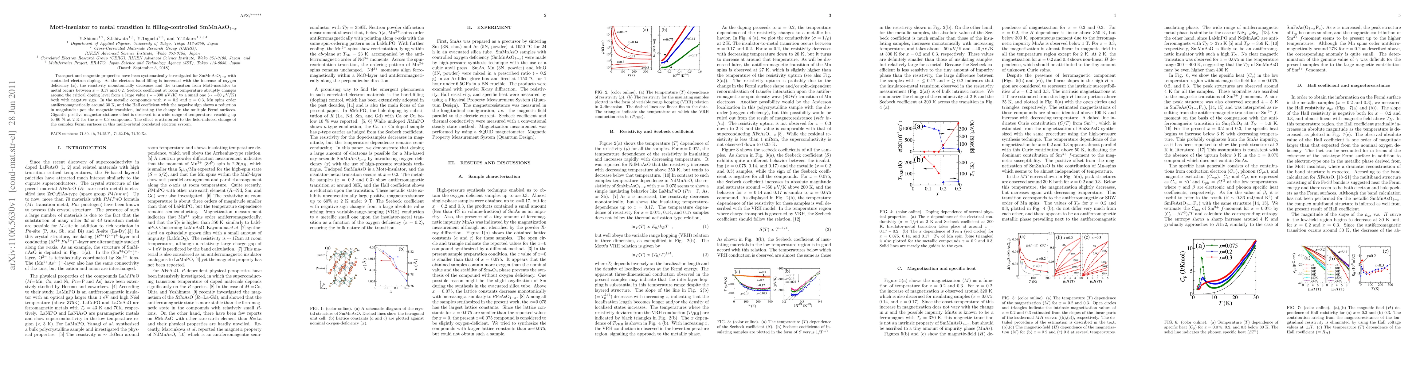 Researchers investigate SmMnAsO_{1-x} compounds with controlled electron-doping, discovering a Mott-insulator to metal transition between x=0.17 and 0.2, accompanied by significant changes in electrical conductivity and magnetoresistance.