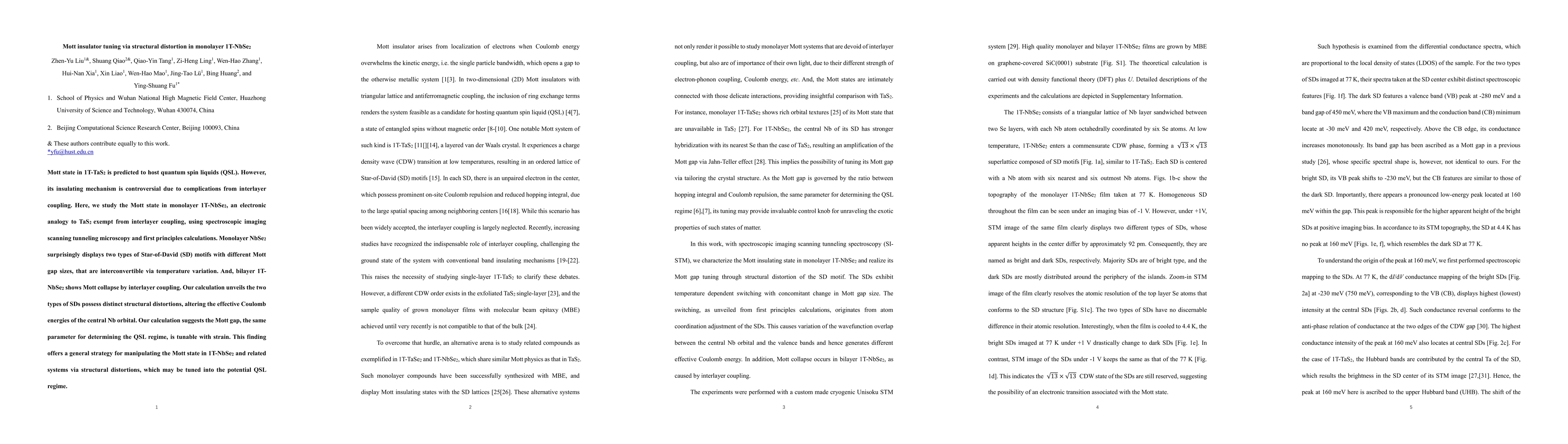 This study investigates the Mott insulator behavior in monolayer 1T-NbSe2, revealing two types of Star-of-David motifs with different Mott gaps that can be interconverted by temperature. Structural distortions are shown to tune the Mott gap and potentially lead to quantum spin liquid states.