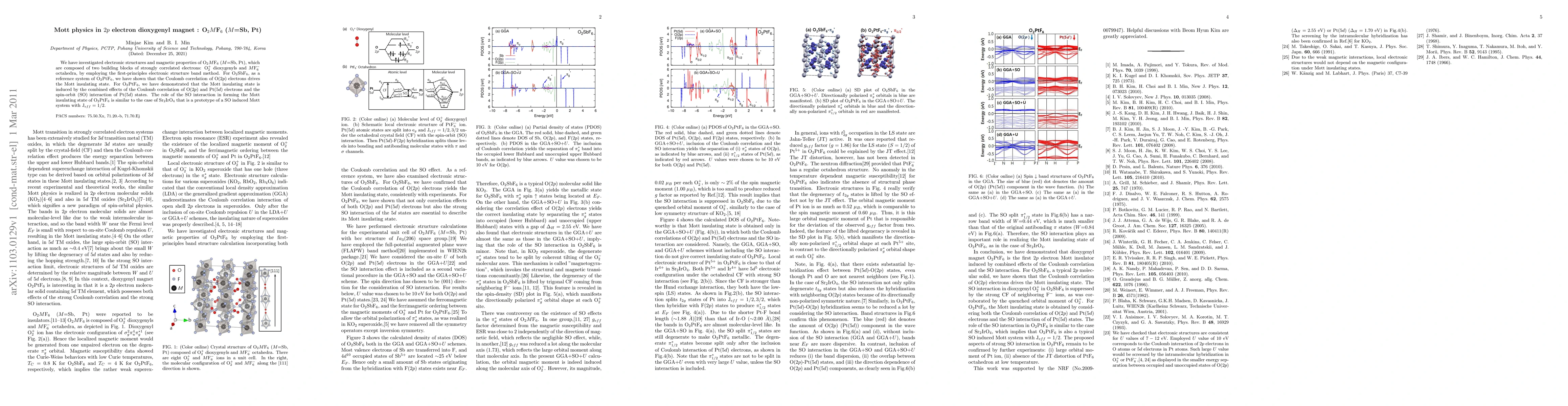 We have investigated electronic structures and magnetic properties of O$_{2}$$M$F$_{6}$ ($M$=Sb, Pt), which are composed of two building blocks of strongly correlated electrons: O$_{2}^{+}$ dioxygenyls and $M$F$_{6}^{-}$ octahedra, by employing the first-principles electronic structure band method. For O$_{2}$SbF$_{6}$, as a reference system of O$_{2}$PtF$_{6}$, we have shown that the Coulomb correlation of O(2$p$) electrons drives the Mott insulating state. For O$_{2}$PtF$_{6}$, we have demonstrated that the Mott insulating state is induced by the combined effects of the Coulomb correlation of O(2$p$) and Pt(5$d$) electrons and the spin-orbit (SO) interaction of Pt(5$d$) states. The role of the SO interaction in forming the Mott insulating state of O$_{2}$PtF$_{6}$ is similar to the case of Sr$_{2}$IrO$_{4}$ that is a prototype of a SO induced Mott system with J$_{eff}=1/2$.