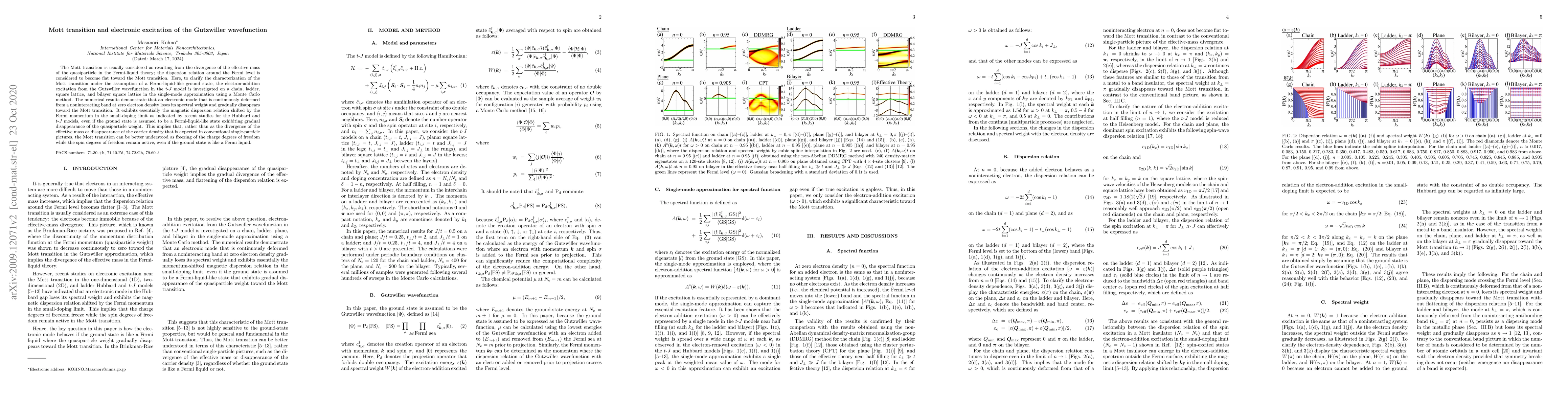 The Mott transition is usually considered as resulting from the divergence of the effective mass of the quasiparticle in the Fermi-liquid theory; the dispersion relation around the Fermi level is considered to become flat towards the Mott transition. Here, to clarify the characterization of the Mott transition under the assumption of a Fermi-liquid-like ground state, the electron-addition excitation from the Gutzwiller wavefunction in the $t$-$J$ model is investigated on a chain, ladder, square lattice, and bilayer square lattice in the single-mode approximation using a Monte Carlo method. The numerical results demonstrate that an electronic mode that is continuously deformed from a non-interacting band at zero electron density loses its spectral weight and gradually disappears towards the Mott transition. It exhibits essentially the magnetic dispersion relation shifted by the Fermi momentum in the small-doping limit as indicated by recent studies for the Hubbard and $t$-$J$ models, even if the ground state is assumed to be a Fermi-liquid-like state exhibiting gradual disappearance of the quasiparticle weight. This implies that, rather than as the divergence of the effective mass or disappearance of the carrier density that is expected in conventional single-particle pictures, the Mott transition can be better understood as freezing of the charge degrees of freedom while the spin degrees of freedom remain active, even if the ground state is like a Fermi liquid.