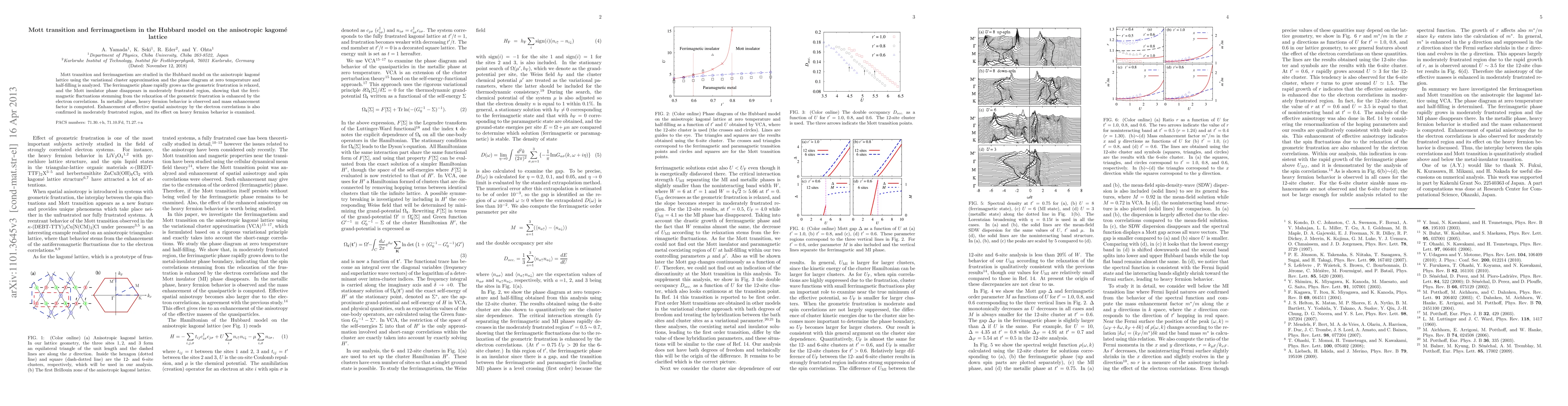 This study investigates the Mott transition and ferrimagnetism in the Hubbard model on an anisotropic kagomé lattice using the variational cluster approximation. It finds that ferrimagnetism emerges as geometric frustration is relaxed, while the Mott insulator phase diminishes, indicating that ferrimagnetic fluctuations are enhanced by electron correlations.