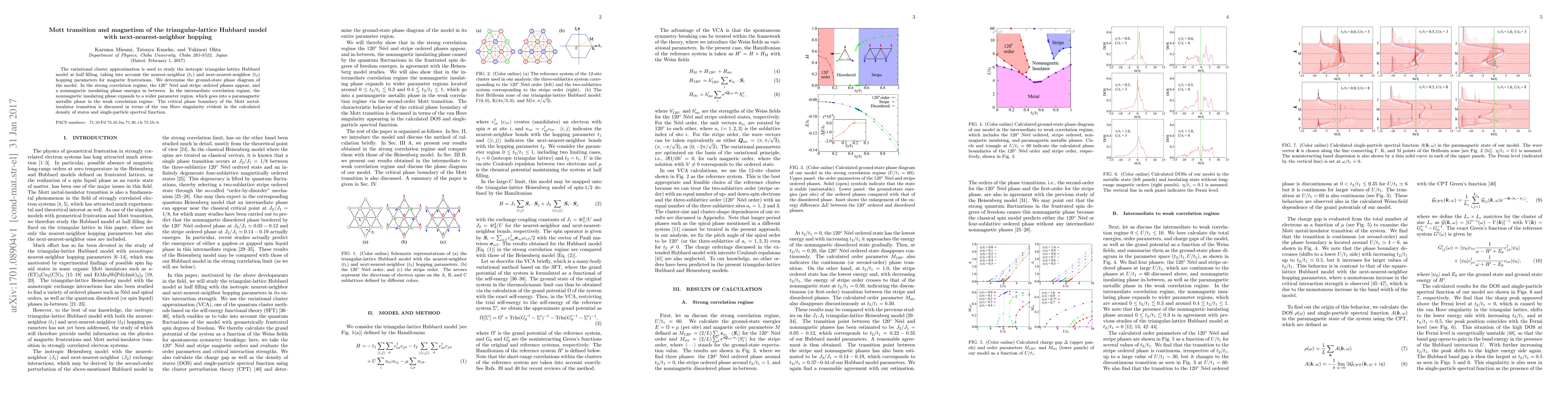 This paper uses the variational cluster approximation to explore the triangular-lattice Hubbard model with both nearest-neighbor and next-nearest-neighbor hopping, revealing a ground-state phase diagram featuring 120° Néel and stripe phases in strong correlation, and a nonmagnetic insulating phase in intermediate correlation, transitioning to a paramagnetic metal in weak correlation. The Mott transition's critical boundary is linked to a van Hove singularity in the density of states.