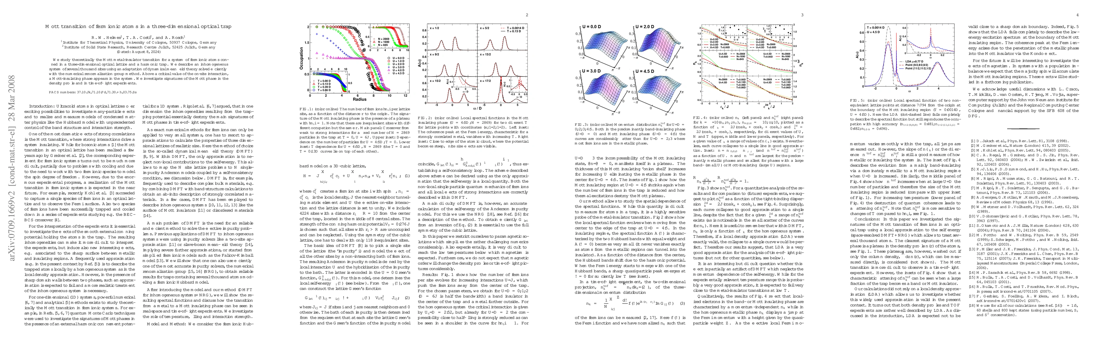 This paper theoretically investigates the Mott metal-insulator transition in fermionic atoms within a three-dimensional optical lattice and harmonic trap, employing dynamical mean field theory and numerical renormalization group. The study reveals the emergence of a Mott-insulating phase above a critical interaction level, evidenced by changes in density profile and time-of-flight experiments.