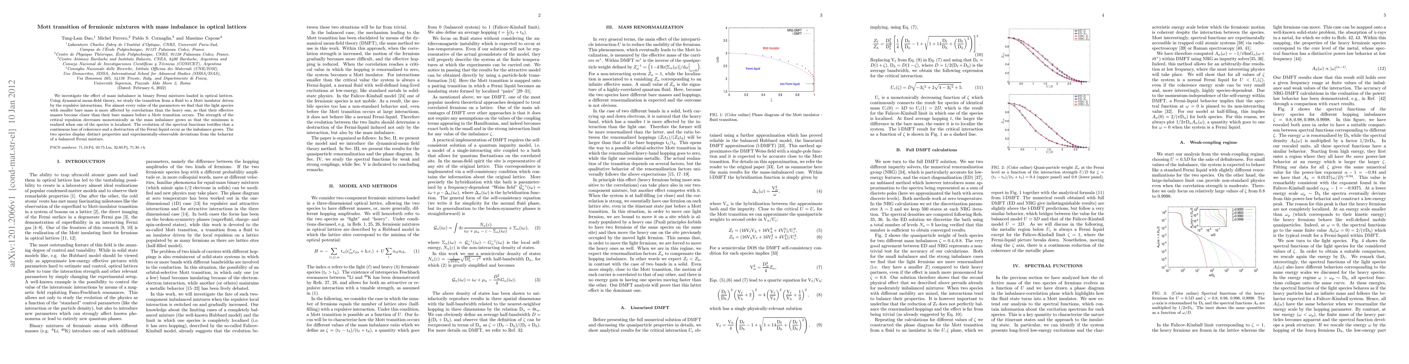 We investigate the effect of mass imbalance in binary Fermi mixtures loaded in optical lattices. Using dynamical mean-field theory, we study the transition from a fluid to a Mott insulator driven by the repulsive interactions. For almost every value of the parameters we find that the light species with smaller bare mass is more affected by correlations than the heavy one, so that their effective masses become closer than their bare masses before a Mott transition occurs. The strength of the critical repulsion decreases monotonically as the mass imbalance grows so that the minimum is realized when one of the species is localized. The evolution of the spectral functions testifies that a continuous loss of coherence and a destruction of the Fermi liquid occur as the imbalance grows. The two species display distinct properties and experimentally-observable deviations from the behavior of a balanced Fermi mixture.