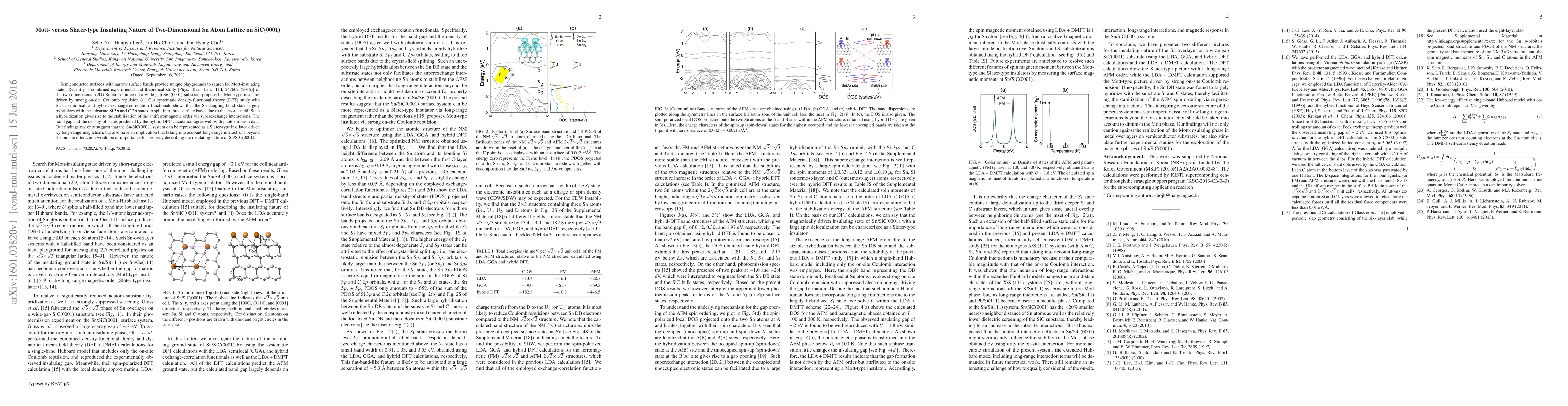 The study employed density-functional theory (DFT) calculations with local, semilocal, and hybrid exchange-correlation functionals to investigate the two-dimensional Sn atom lattice on SiC(0001). It compared results from LDA, GGA, and hybrid DFT methods, as well as LDA+DMFT calculations.