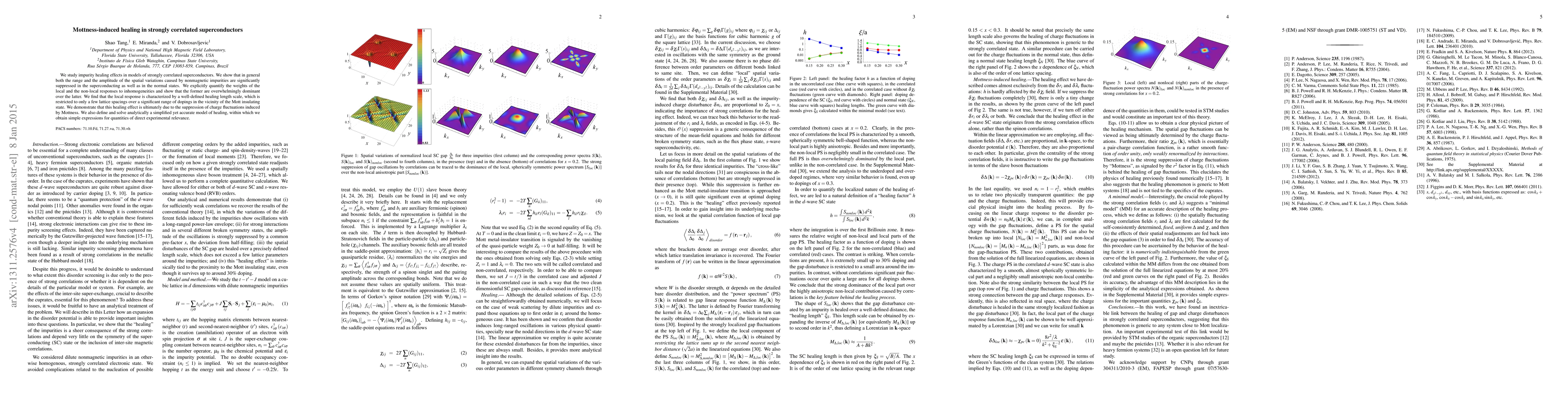 We study impurity healing effects in models of strongly correlated superconductors. We show that in general both the range and the amplitude of the spatial variations caused by nonmagnetic impurities are significantly suppressed in the superconducting as well as in the normal states. We explicitly quantify the weights of the local and the non-local responses to inhomogeneities and show that the former are overwhelmingly dominant over the latter. By quantifying the spatial range of the local response, we show that it is restricted to only a few lattice spacings over a significant range of dopings in the vicinity of the Mott insulating state. We demonstrate that this healing effect is ultimately due to the suppression of charge fluctuations induced by Mottness. We also define and solve analytically a simplified yet accurate model of healing, within which we obtain simple expressions for quantities of direct experimental relevance.