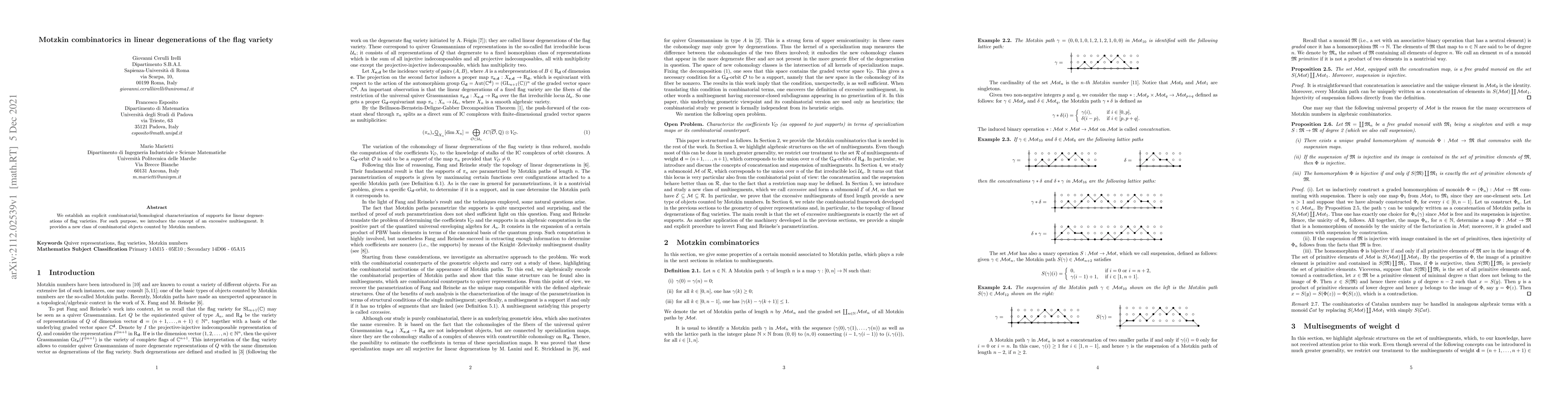 This paper presents a combinatorial/homological framework for understanding the supports of linear degenerations of flag varieties, introducing excessive multisegments—a new class of combinatorial objects linked to Motzkin numbers.
