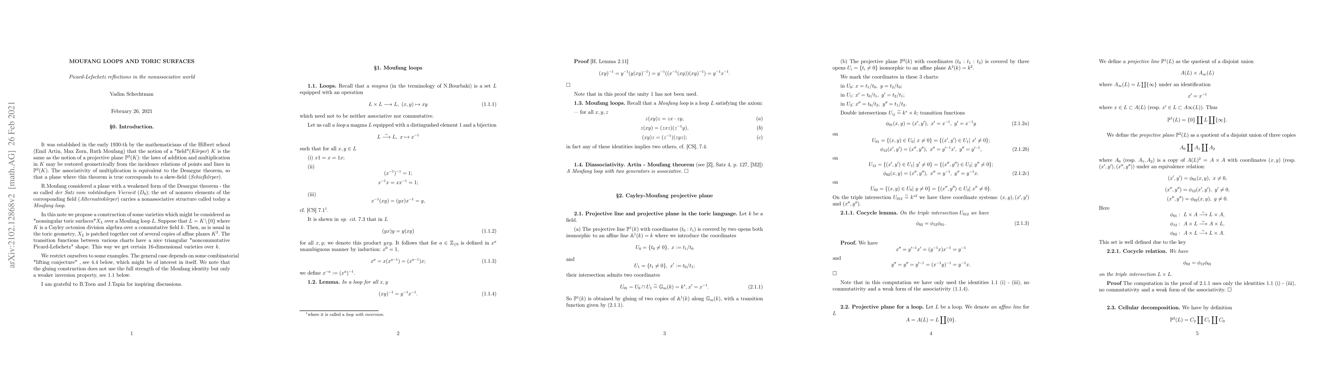 The toric surfaces for octonions and related objects are discussed.