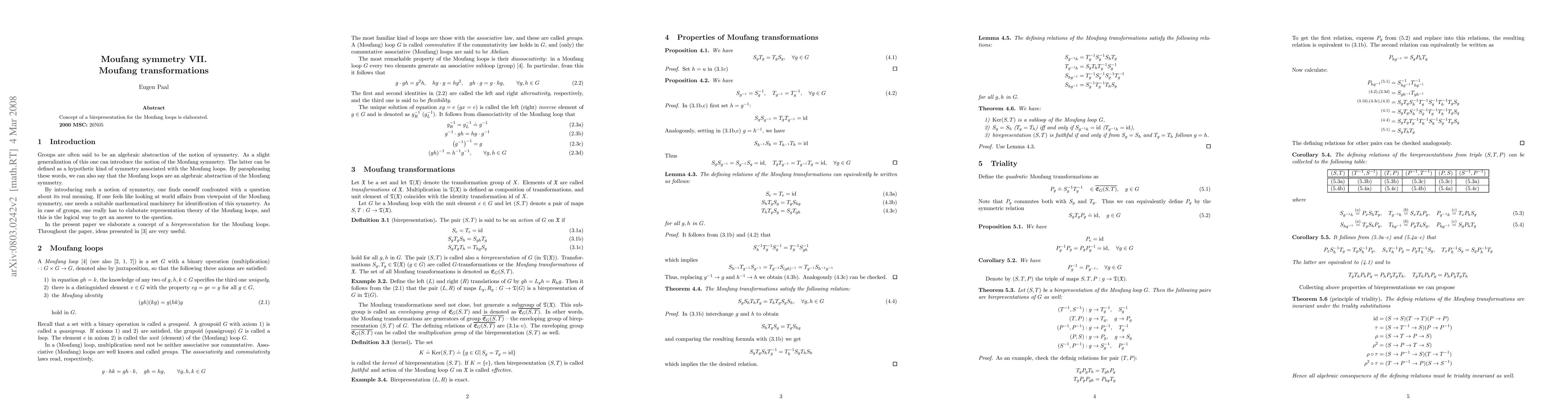Summary: This paper explores the concept of birepresentations for Moufang loops, focusing on the development and implications of Moufang transformations within this mathematical framework.