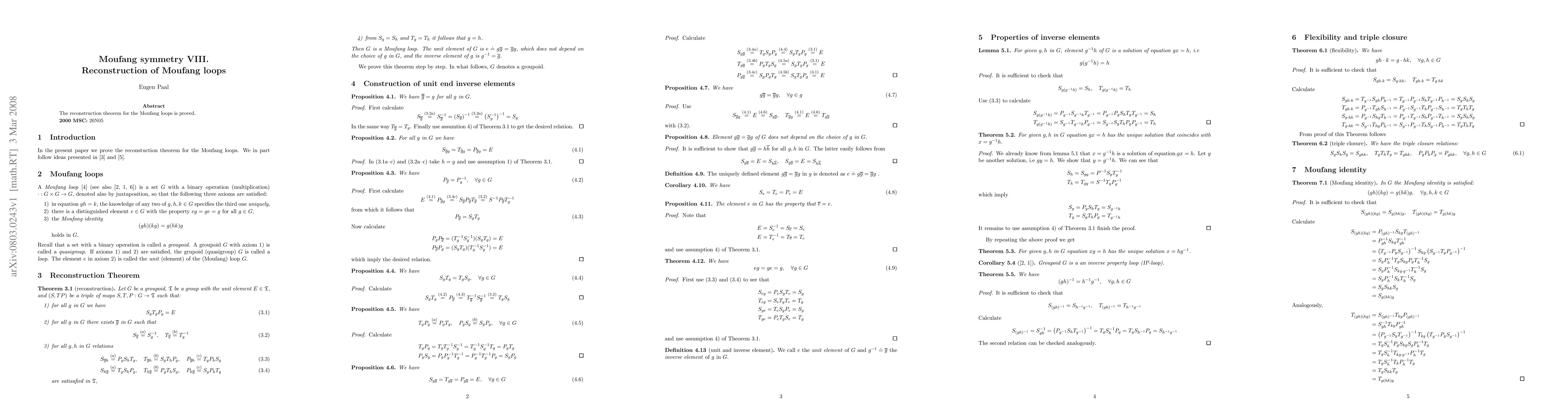 Summary: The paper proves a reconstruction theorem for Moufang loops, establishing a method to reconstruct these algebraic structures based on their properties. This contributes to a deeper understanding of the underlying structure of Moufang loops.