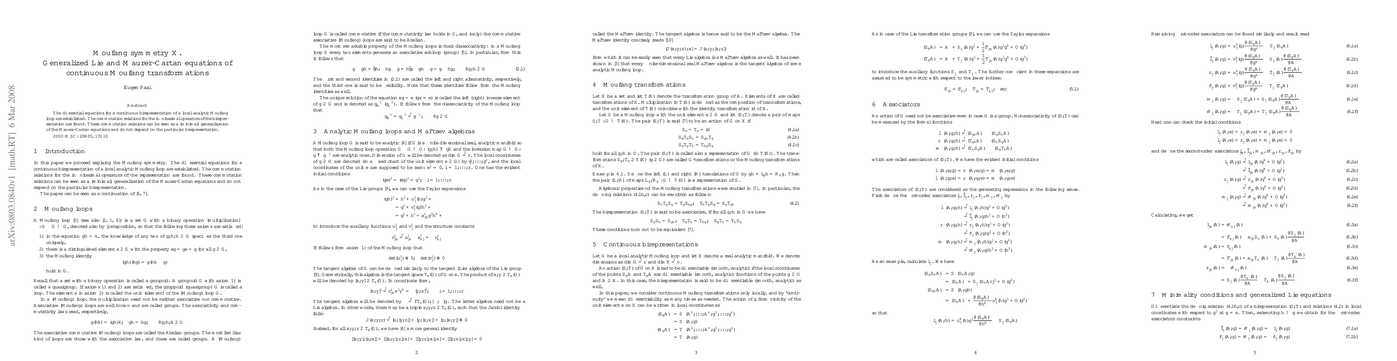 Summary: This paper establishes differential equations for continuous birepresentations of local analytic Moufang loops and identifies commutation relations for their infinitesimal operators, presenting a generalized version of the Maurer-Cartan equations that is independent of the specific birepresentation.
