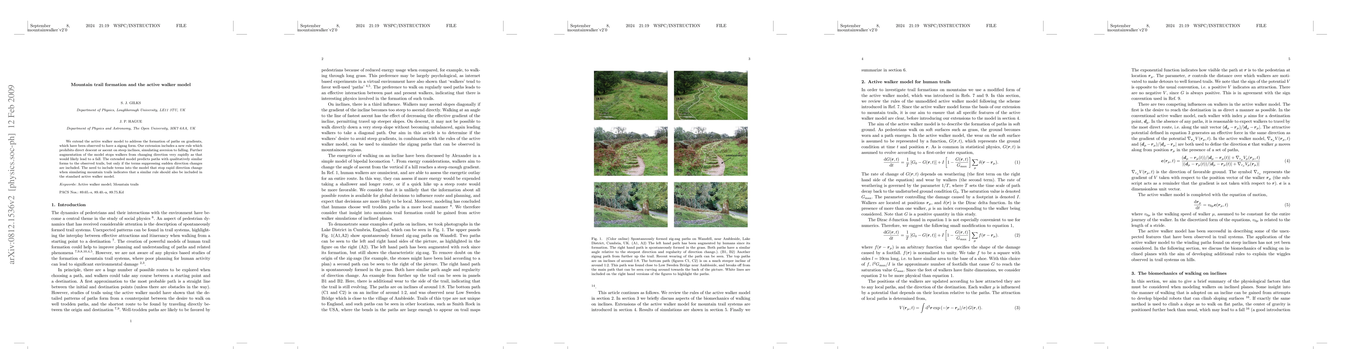 We extend the active walker model to address the formation of paths on gradients, which have been observed to have a zigzag form. Our extension includes a new rule which prohibits direct descent or ascent on steep inclines, simulating aversion to falling. Further augmentation of the model stops walkers from changing direction very rapidly as that would likely lead to a fall. The extended model predicts paths with qualitatively similar forms to the observed trails, but only if the terms suppressing sudden direction changes are included. The need to include terms into the model that stop rapid direction change when simulating mountain trails indicates that a similar rule should also be included in the standard active walker model.