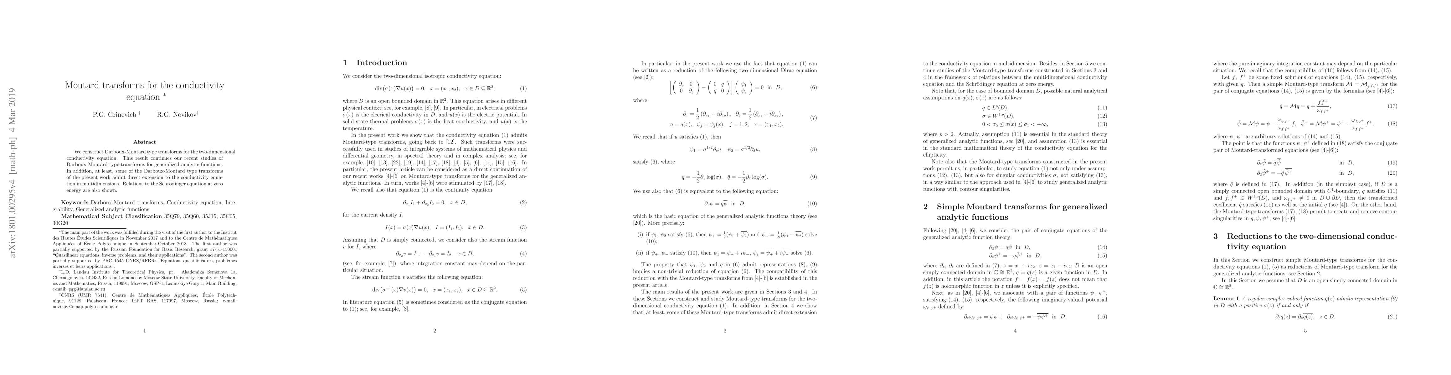 Researchers developed Darboux-Moutard type transforms for the 2D conductivity equation, showing potential extensions to multidimensional cases and connections to the Schr"odinger equation.