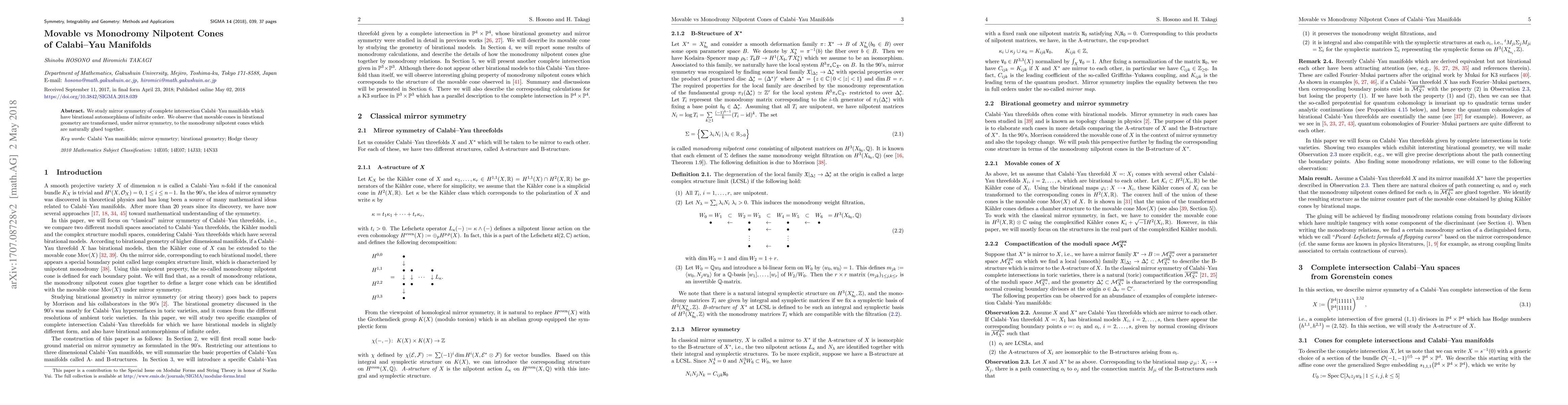 Researchers study Calabi-Yau manifolds with infinite order birational automorphisms, finding that mirror symmetry transforms movable cones to naturally glued monodromy nilpotent cones.