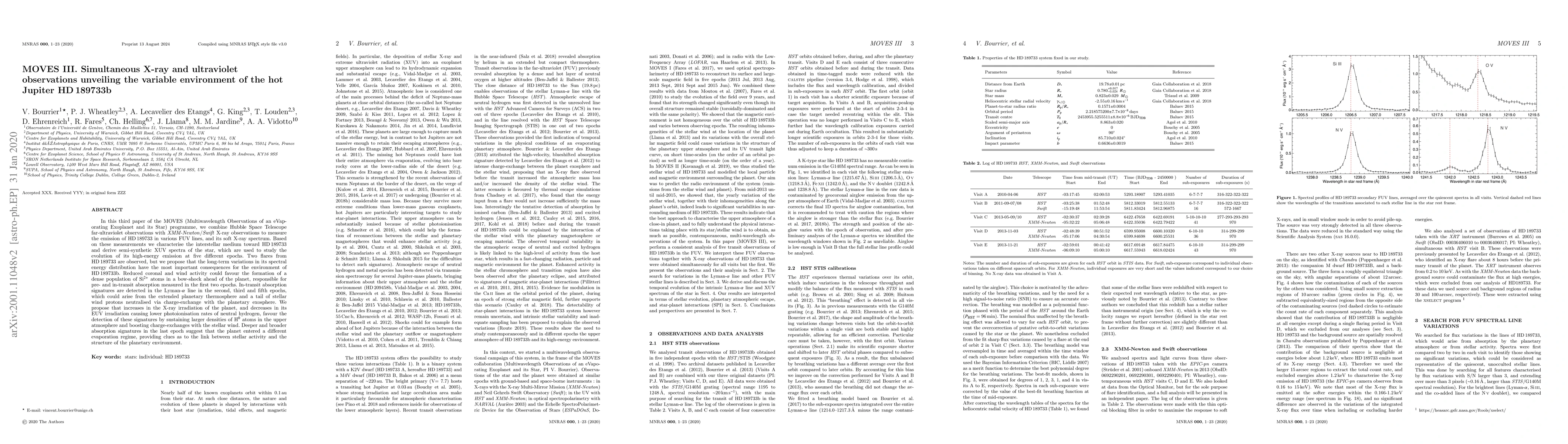 In this third paper of the MOVES (Multiwavelength Observations of an eVaporating Exoplanet and its Star) programme, we combine Hubble Space Telescope far-ultraviolet observations with XMM-Newton/Swift X-ray observations to measure the emission of HD 189733 in various FUV lines, and its soft X-ray spectrum. Based on these measurements we characterise the interstellar medium toward HD 189733 and derive semi-synthetic XUV spectra of the star, which are used to study the evolution of its high-energy emission at five different epochs. Two flares from HD 189733 are observed, but we propose that the long-term variations in its spectral energy distribution have the most important consequences for the environment of HD 189733b. Reduced coronal and wind activity could favour the formation of a dense population of Si$^{2+}$ atoms in a bow-shock ahead of the planet, responsible for pre- and in-transit absorption measured in the first two epochs. In-transit absorption signatures are detected in the Lyman-$\alpha$ line in the second, third and fifth epochs, which could arise from the extended planetary thermosphere and a tail of stellar wind protons neutralised via charge-exchange with the planetary exosphere. We propose that increases in the X-ray irradiation of the planet, and decreases in its EUV irradiation causing lower photoionisation rates of neutral hydrogen, favour the detection of these signatures by sustaining larger densities of H$^{0}$ atoms in the upper atmosphere and boosting charge-exchanges with the stellar wind. Deeper and broader absorption signatures in the last epoch suggest that the planet entered a different evaporation regime, providing clues as to the link between stellar activity and the structure of the planetary environment.