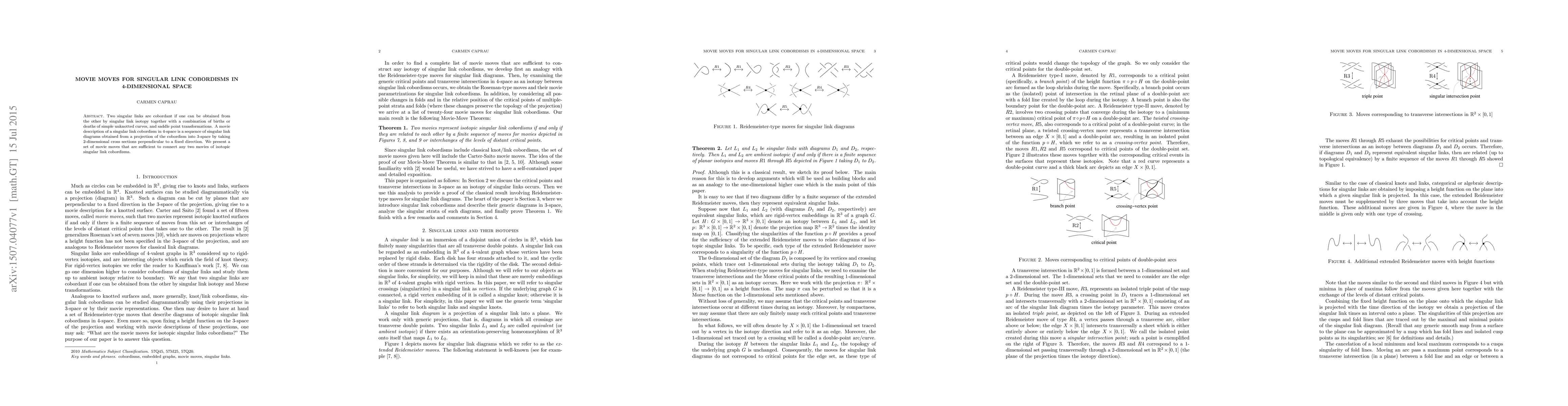 Two singular links are cobordant if one can be obtained from the other by singular link isotopy together with a combination of births or deaths of simple unknotted curves, and saddle point transformations. A movie description of a singular link cobordism in 4-space is a sequence of singular link diagrams obtained from a projection of the cobordism into 3-space by taking 2-dimensional cross sections perpendicular to a fixed direction. We present a set of movie moves that are sufficient to connect any two movies of isotopic singular link cobordisms.