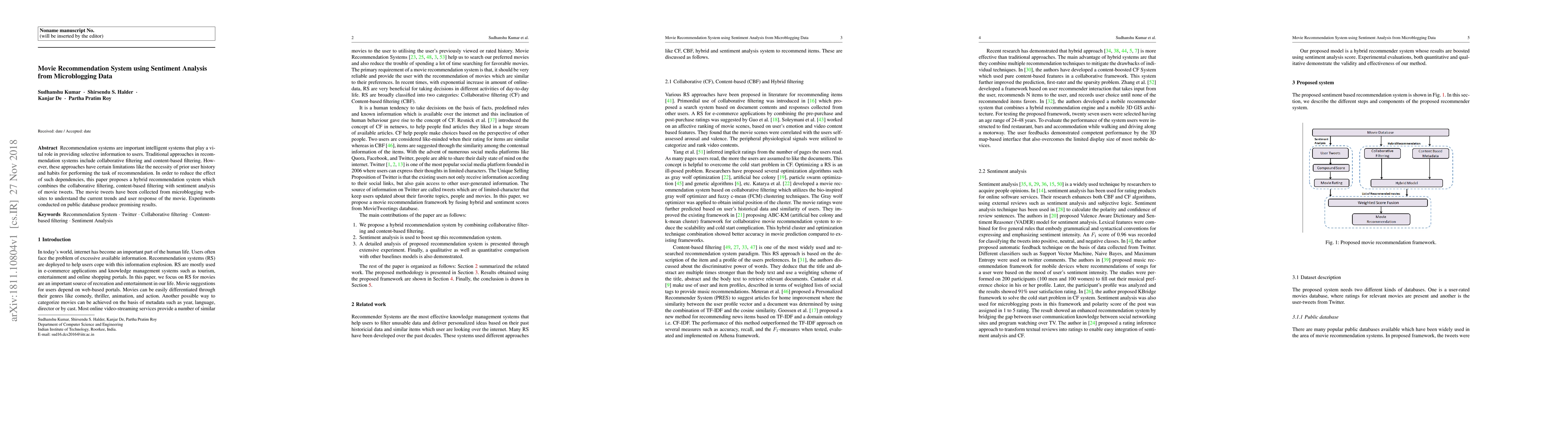 This paper proposes a hybrid movie recommendation system that integrates collaborative filtering, content-based filtering, and sentiment analysis of movie tweets from microblogging sites to reduce dependency on user history. Experiments on public data show promising results in understanding current trends and user responses.