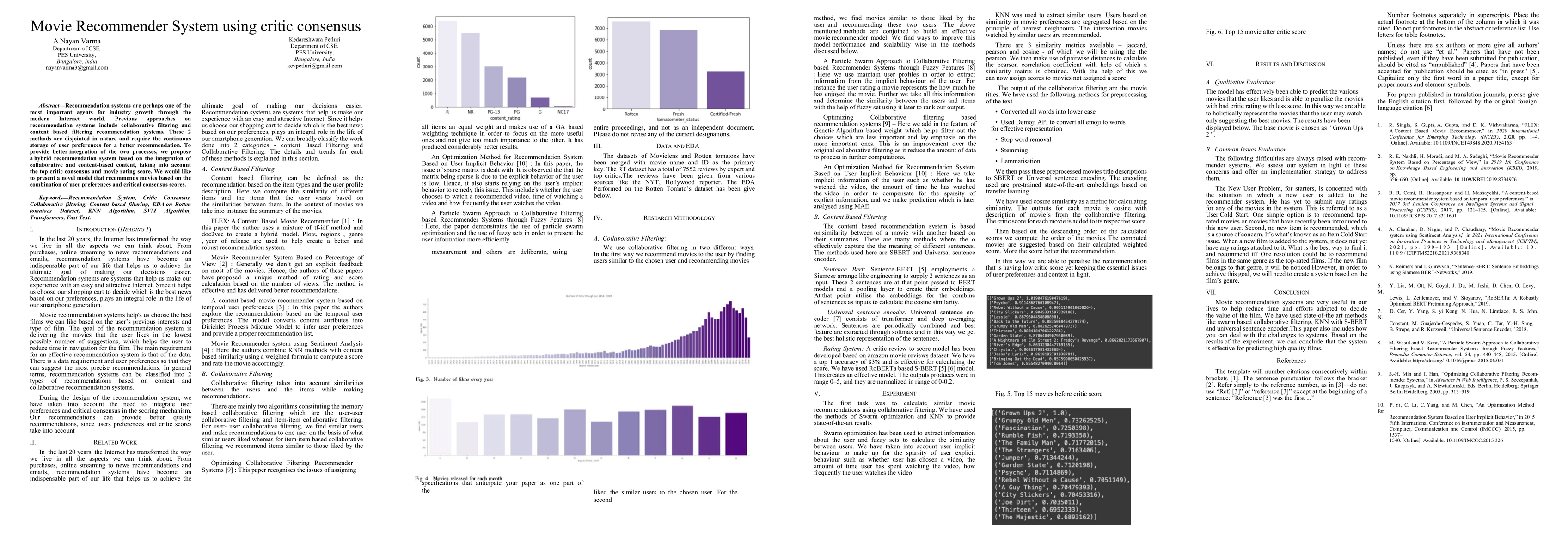 This paper proposes a hybrid recommendation system that combines collaborative filtering and content-based filtering, integrating top critic consensus and movie rating scores to enhance movie recommendations. The model aims to provide a more integrated and accurate recommendation process.