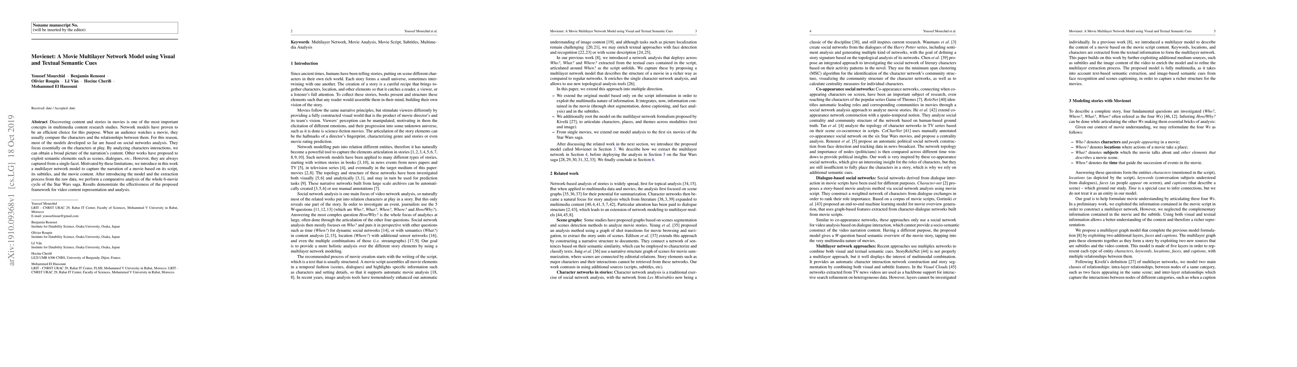 Movienet introduces a multilayer network model that integrates visual and textual semantic cues to analyze movie narratives. The model captures character interactions, scenes, and dialogues to provide a comprehensive representation of movie content, demonstrated through a comparative analysis of the Star Wars saga.