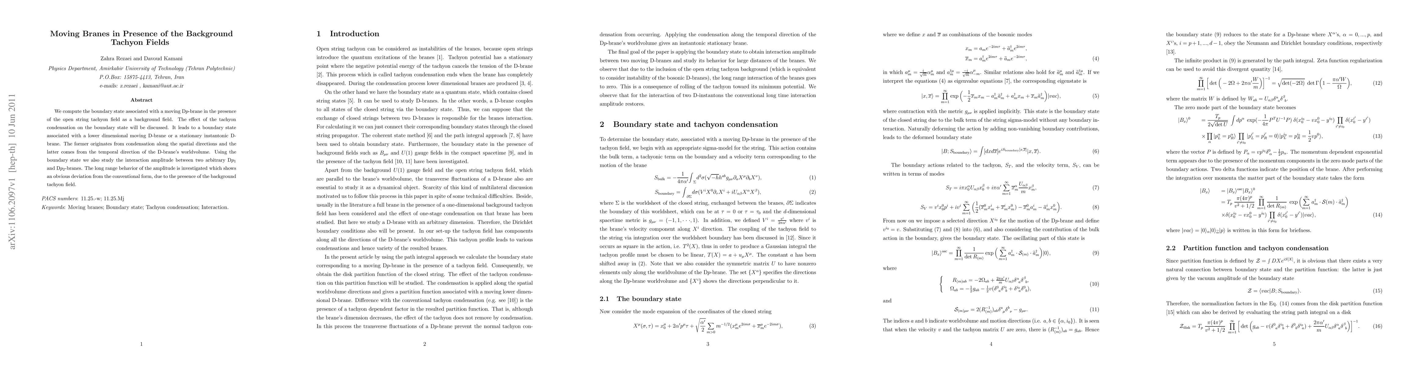 This paper computes the boundary state for a moving D$p$-brane influenced by an open string tachyon field, revealing its effect on the boundary state and leading to lower dimensional brane configurations or stationary instantonic branes. It also examines the interaction amplitude between two D-branes, showing a deviation from conventional forms due to the background tachyon field.