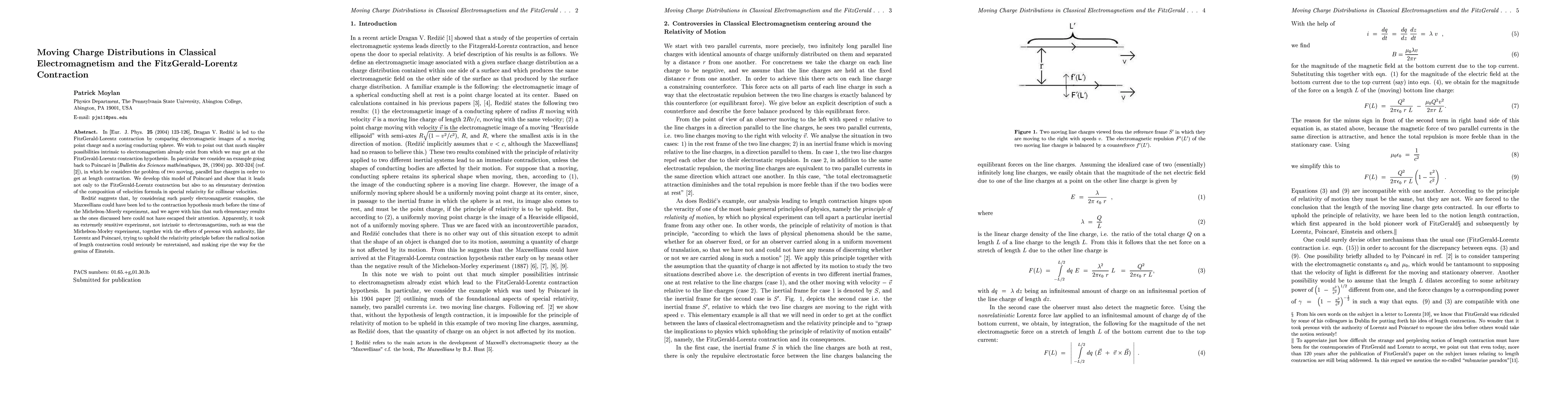 In [Eur. J. Phys. {\bf 25} (2004) 123-126], Dragan V. Red{\v z}i\'c is led to the FitzGerald-Lorentz contraction by comparing electromagnetic images of a moving point charge and a moving conducting sphere. We wish to point out that much simpler possibilities intrinsic to electromagnetism already exist from which we may get at the FitzGerald-Lorentz contraction hypothesis. In particular we consider an example going back to Poincar\'e in [{\it Bulletin des Sciences math\'ematiques}, 28, (1904) pp. 302-324], in which he considers the problem of two moving, parallel line charges in order to get at length contraction. We develop this model of Poincar\'e and show that it leads not only to the FitzGerald-Lorentz contraction but also to an elementary derivation of the composition of velocities formula in special relativity for collinear velocities. Red{\v z}i\'c suggests that, by considering such purely electromagnetic examples, the Maxwellians could have been led to the contraction hypothesis much before the time of the Michelson-Morely experiment, and we agree with him that such elementary results as the ones discussed here could not have escaped their attention. Apparently, it took an extremely sensitive experiment, not intrinsic to electromagnetism, such as was the Michelson-Morley experiment, together with the efforts of persons with authority, like Lorentz and Poincar\'e, trying to uphold the relativity principle before the radical notion of length contraction could seriously be entertained, and making ripe the way for the genius of Einstein.