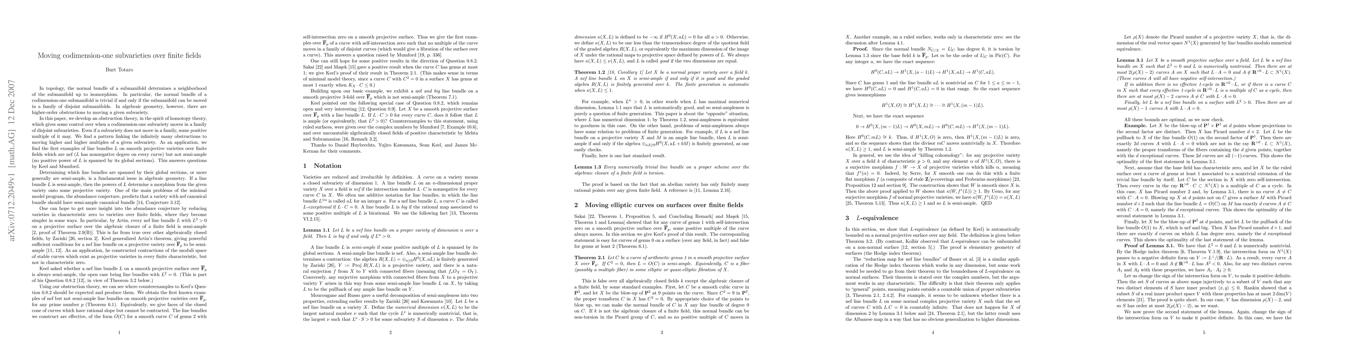 This paper provides examples of nef line bundles on smooth projective varieties over finite fields that are not semi-ample, answering questions posed by Keel and Mumford. The authors use obstruction theory, inspired by homotopy theory, to demonstrate the limitations in moving multiples of codimension-one subvarieties, showcasing nef and big line bundles on 3-folds that fail to be semi-ample.