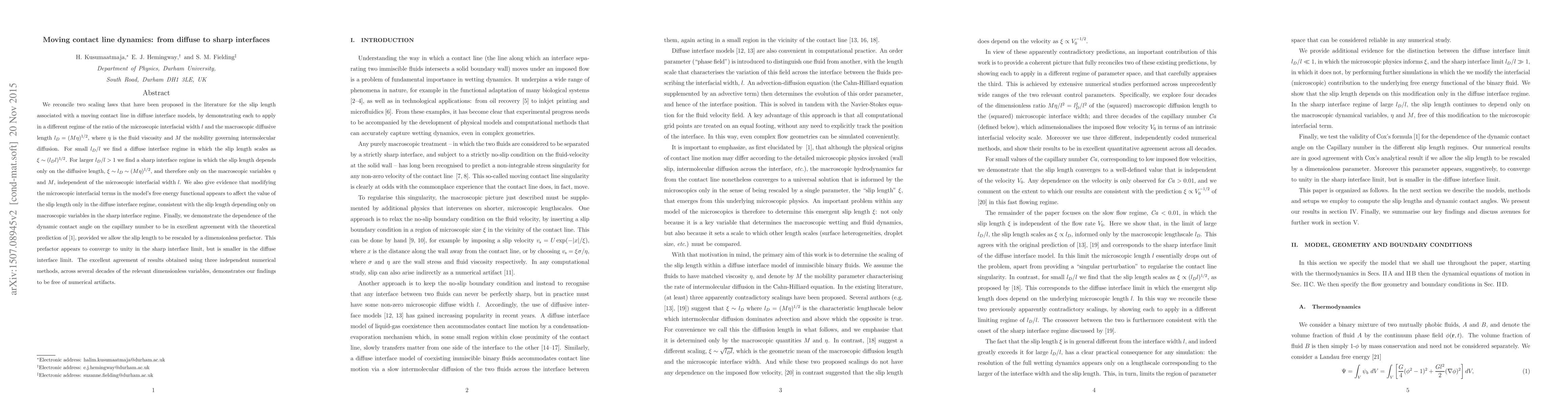 We reconcile two scaling laws that have been proposed in the literature for the slip length associated with a moving contact line in diffuse interface models, by demonstrating each to apply in a different regime of the ratio of the microscopic interfacial width $l$ and the macroscopic diffusive length $l_D= (M\eta)^{1/2}$, where $\eta$ is the fluid viscosity and $M$ the mobility governing intermolecular diffusion. For small $l_D/l$ we find a diffuse interface regime in which the slip length scales as $\xi \sim(l_Dl)^{1/2}$. For larger $l_D/l>1$ we find a sharp interface regime in which the slip length depends only on the diffusive length, $\xi \sim l_D \sim (M\eta)^{1/2}$, and therefore only on the macroscopic variables $\eta$ and $M$, independent of the microscopic interfacial width $l$. We also give evidence that modifying the microscopic interfacial terms in the model's free energy functional appears to affect the value of the slip length only the diffuse interface regime, consistent with the slip length depending only on macroscopic variables in the sharp interface regime. Finally, we demonstrate the dependence of the dynamic contact angle on the capillary number to be in excellent agreement with the theoretical prediction of \cite{Cox1986}, provided we allow the slip length to be rescaled by a dimensionless prefactor. This prefactor appears to converge to unity in the sharp interface limit, but is smaller in the diffuse interface limit. The excellent agreement of results obtained using three independent numerical methods, across several decades of the relevant dimensionless variables, demonstrates our findings to be free of numerical artifacts.