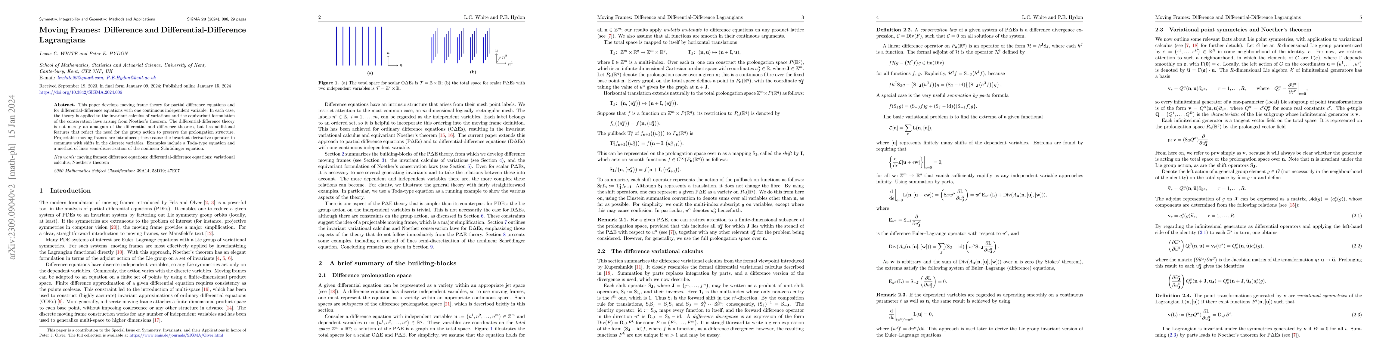 This paper develops moving frame theory for partial difference and differential-difference equations, applying it to the invariant calculus of variations and conservation laws derived from Noether's theorem. It introduces projectable moving frames to ensure commuting with shifts in discrete variables, illustrated with Toda-type and semi-discretized nonlinear Schrödinger equations.