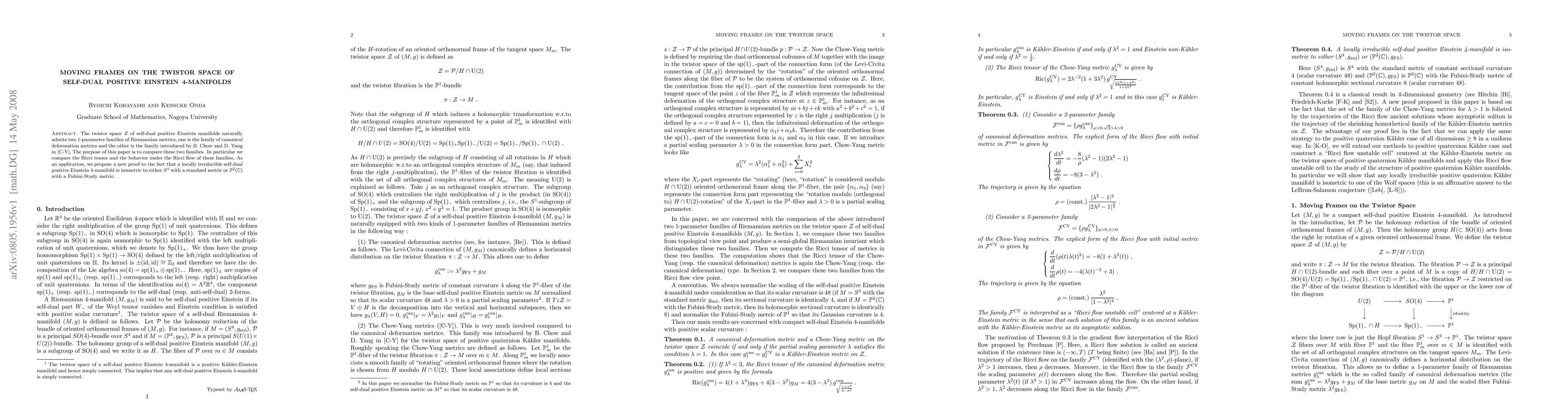 The research employs a detailed analysis of the twistor space of self-dual positive Einstein 4-manifolds, comparing two families of Riemannian metrics and examining their Ricci tensors and behavior under Ricci flow.