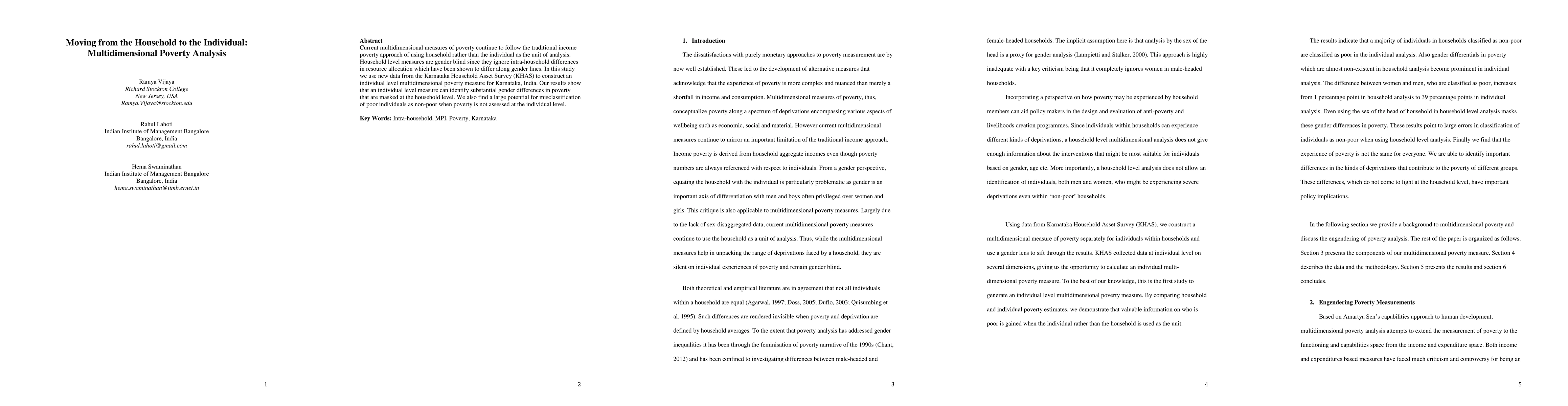 This study shifts from household to individual-level analysis in multidimensional poverty measurement, revealing significant gender disparities in poverty that are obscured by household-level assessments. Using data from Karnataka, India, it demonstrates that individual-level measures can better identify and classify the true poverty status of individuals.